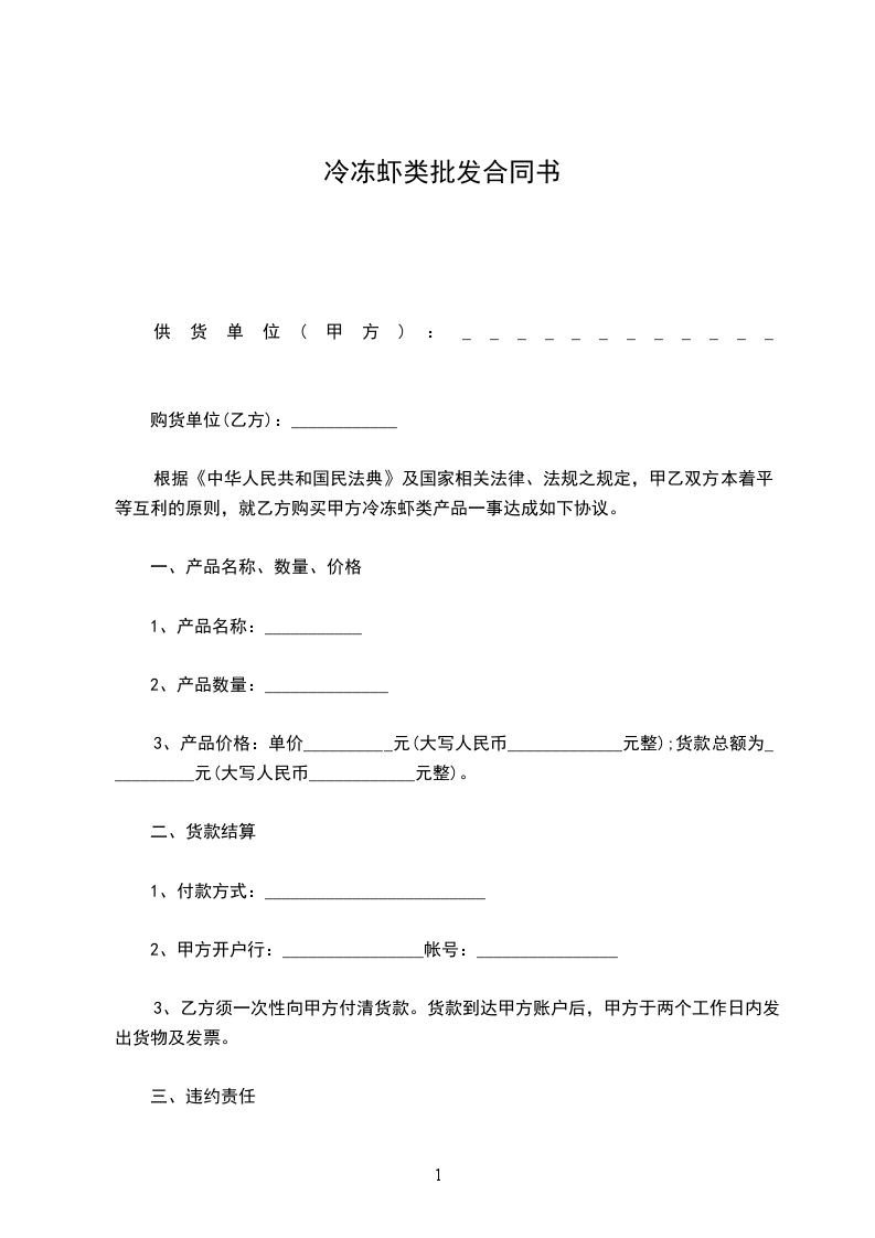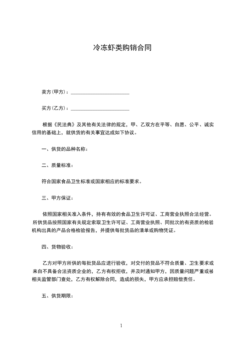根据《中华人民共和国民法典》及国家相关法律、法规之规定,甲乙双方本着平等互利的原则,就乙方购买甲方冷冻虾类产品一事达成如下协议。