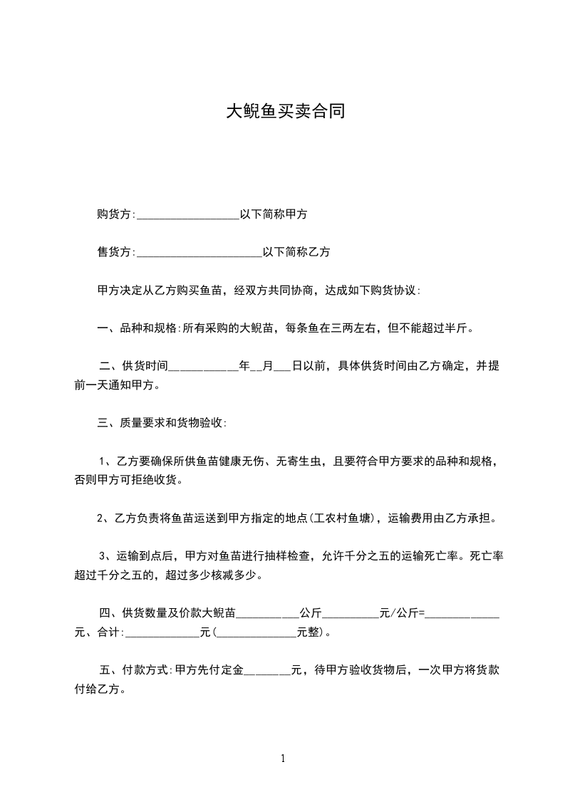 四、供货数量及价款大鲵苗___________公斤__________元/公斤=_____________元、合计:_____________元(______________元整)。
