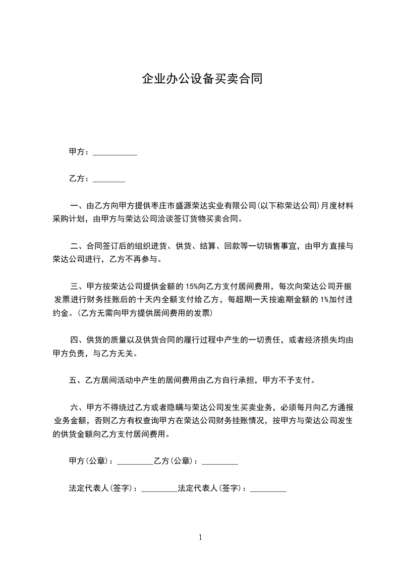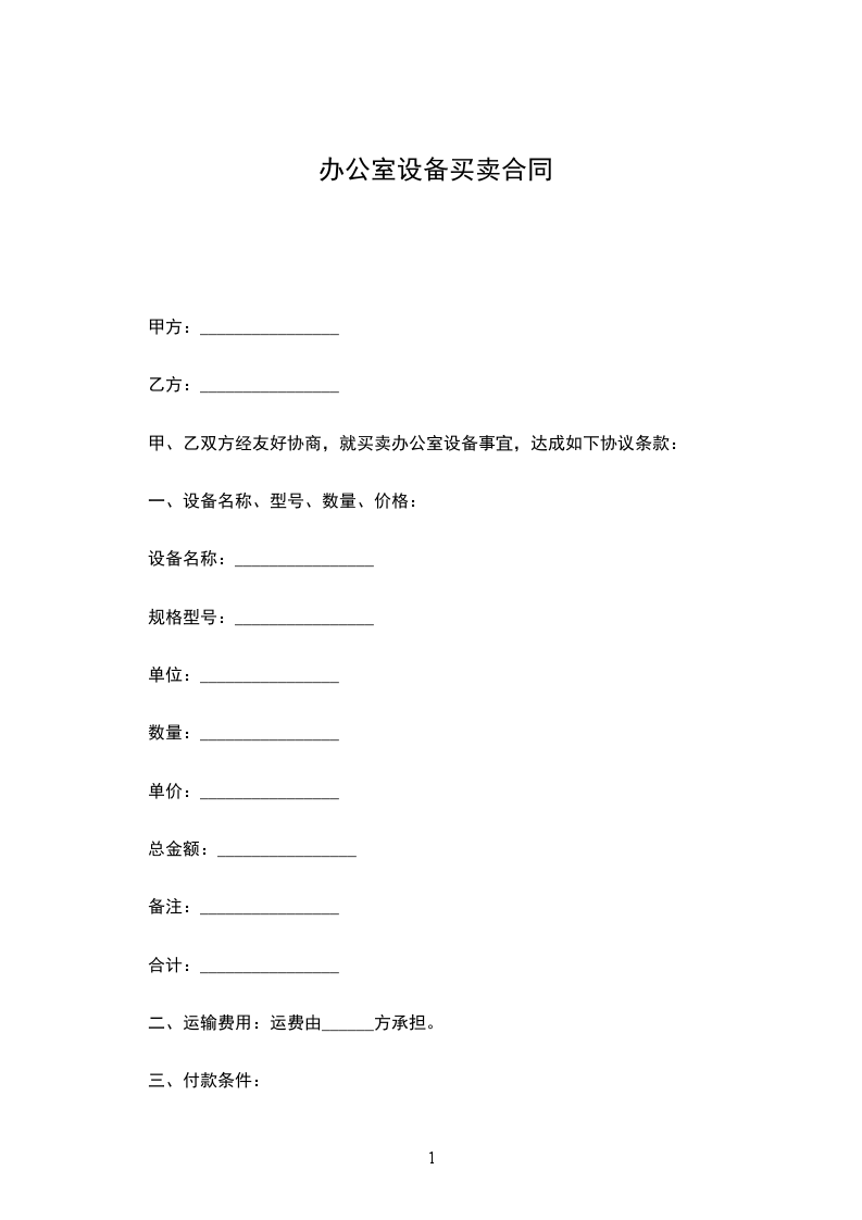 甲、乙双方经友好协商,就买卖办公室设备事宜,达成如下协议条款: