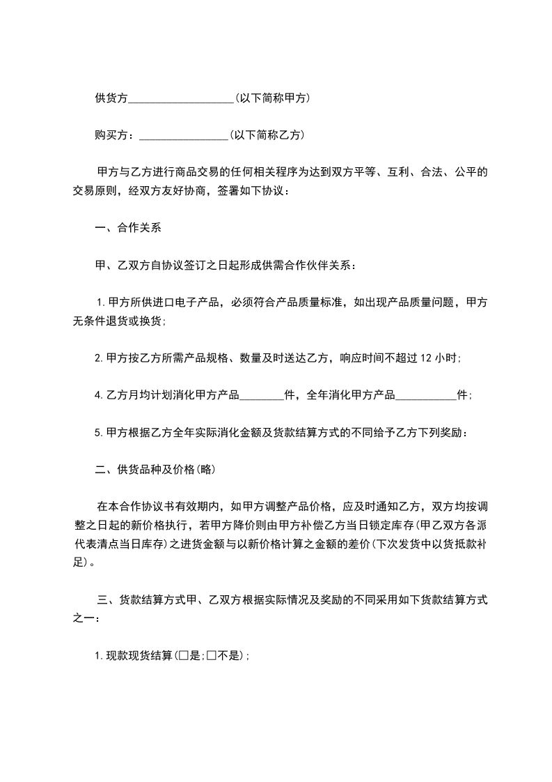 1.甲方中途退货的,应向乙方赔偿退货部分货款的___%违约金。