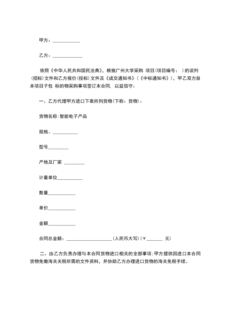买方:____________ (下称甲方) 卖方:____________ (下称乙方)