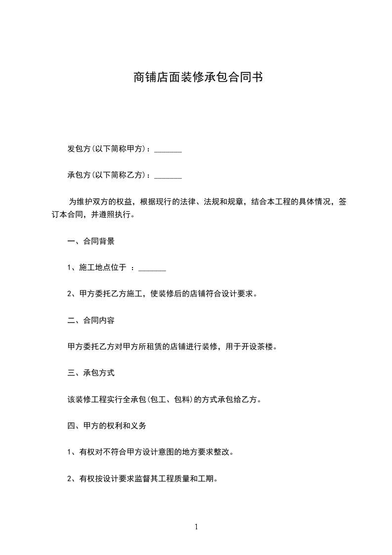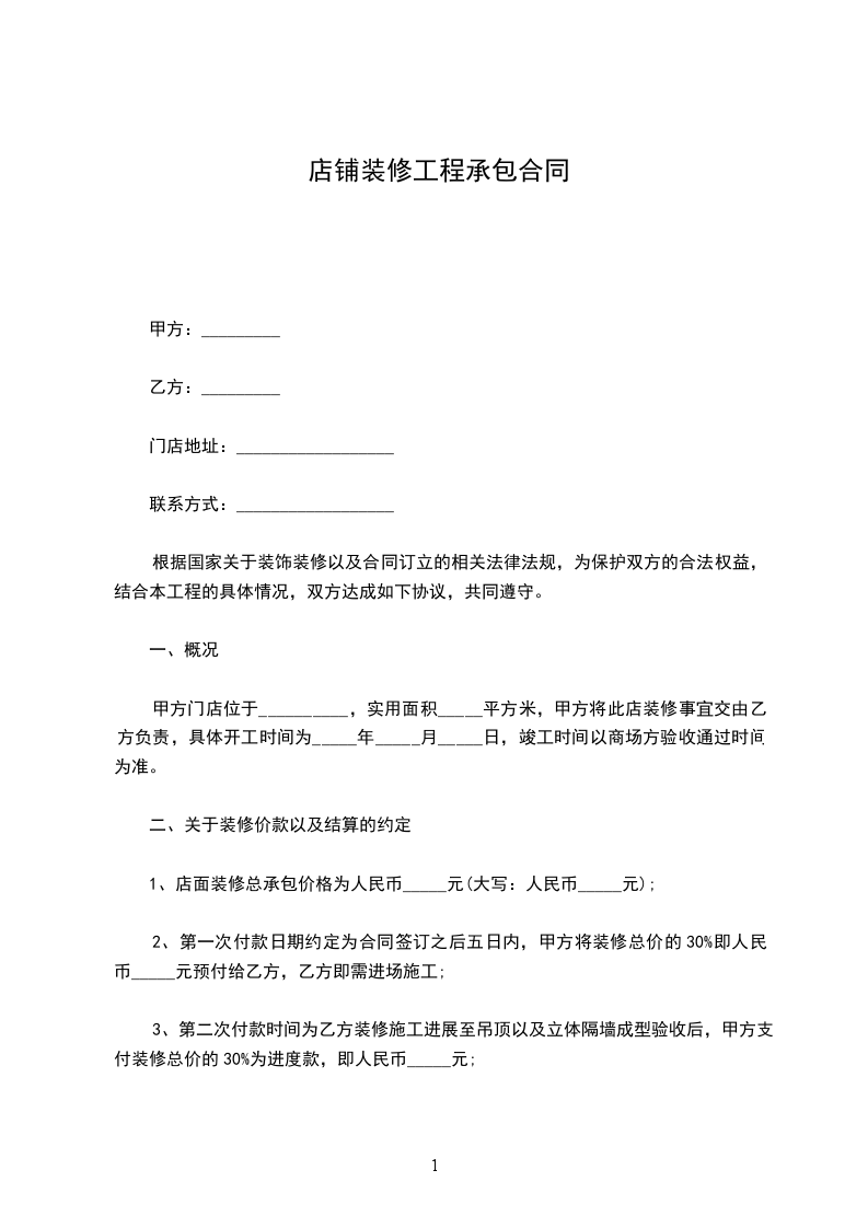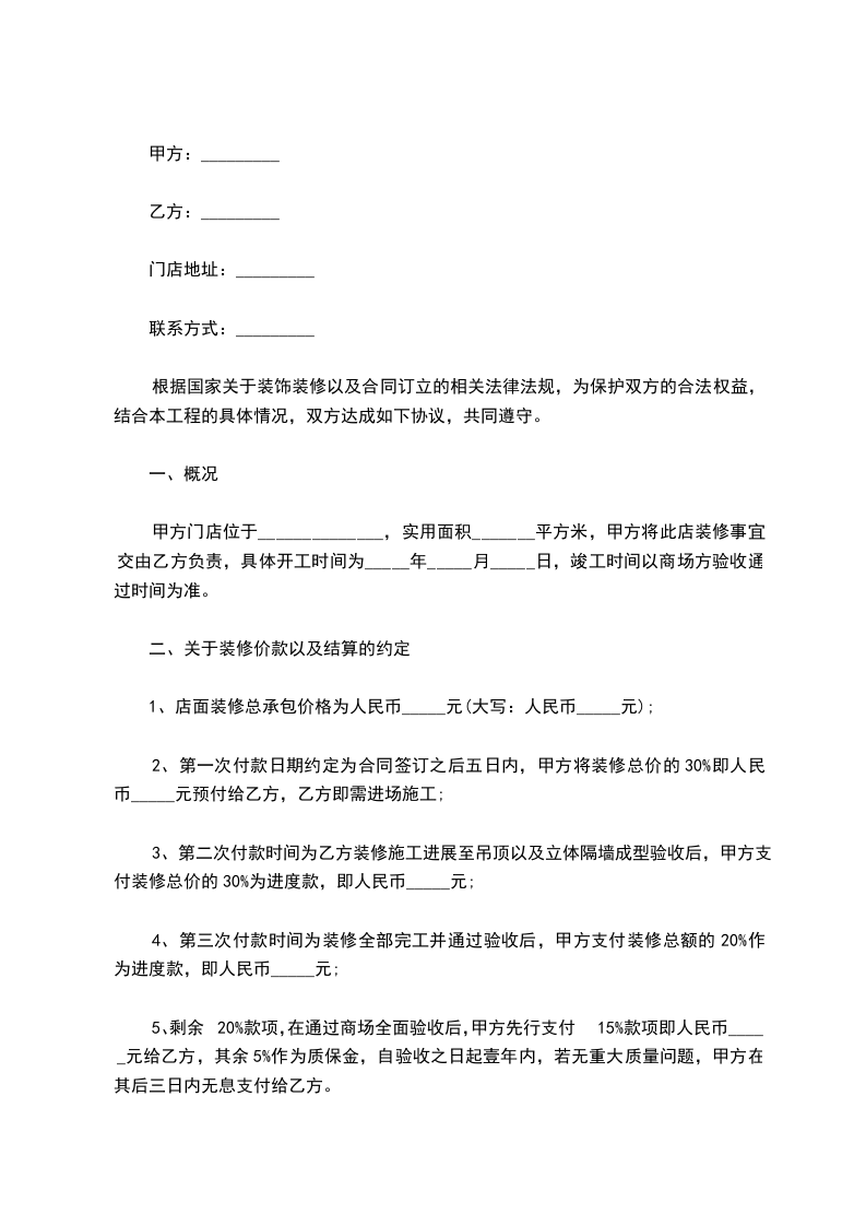 1、店面装修总承包价格为人民币_____元(大写:人民币_____元);