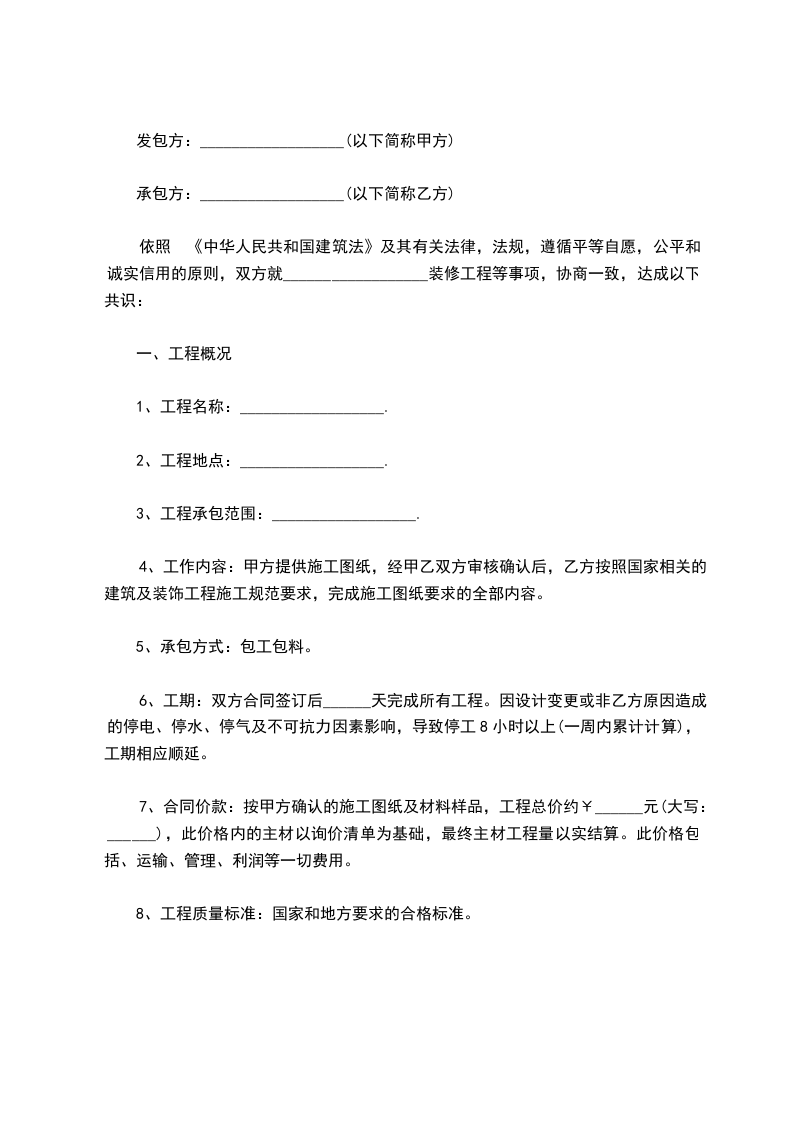 根据国家关于装饰装修以及合同订立的相关法律法规,为保护双方的合法权益,结合本工程的具体情况,双方达成如下协议,共同遵守。