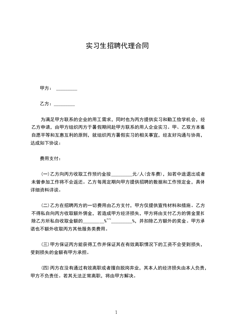 (一)乙方向丙方收取工作预约金按_________元/人(含车费),如若中途退出或者未曾参加工作将不会返还。乙方每周定期向甲方提供招聘的数据和工作预定金,具体详细资料详谈。