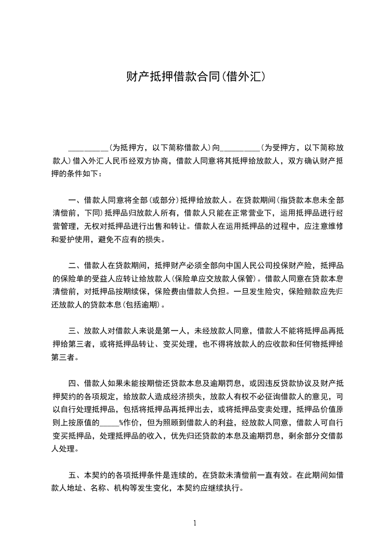 一、借款人同意将全部(或部分)抵押给放款人。在贷款期间(指贷款本息未全部清偿前,下同)抵押品归放款人所有,借款人只能在正常营业下,运用抵押品进行经营管理,无权对抵押品进行出售和转让。借款人在运用抵押品的过程中,应注意维修和爱护使用,避免不应有的损失。