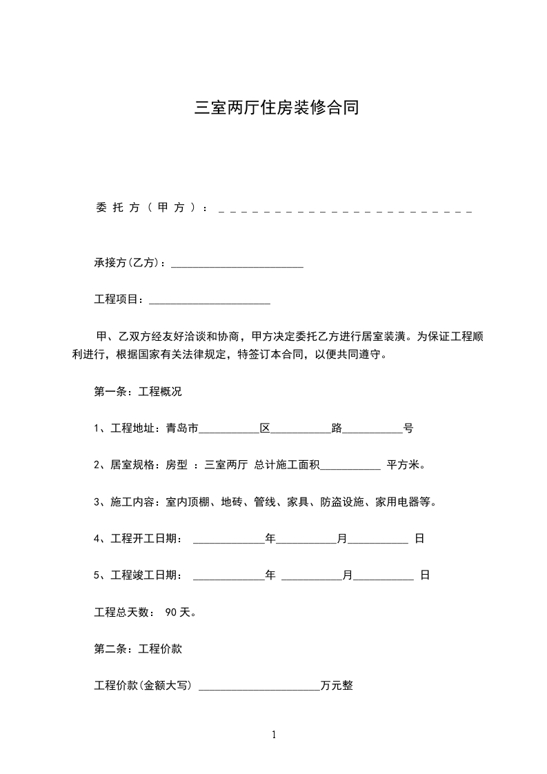 1、工程地址:青岛市___________区___________路___________号