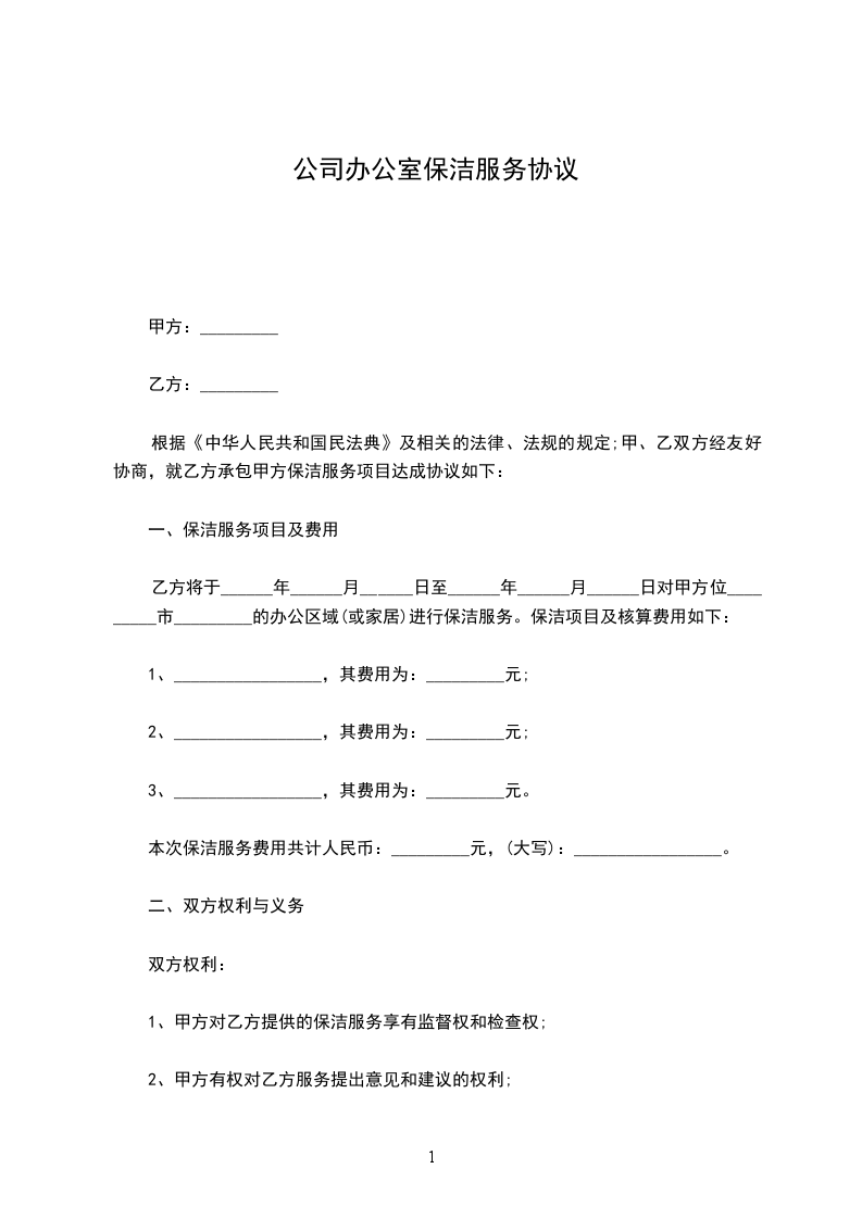 乙方将于______年______月______日至______年______月______日对甲方位_________市_________的办公区域(或家居)进行保洁服务。保洁项目及核算费用如下: