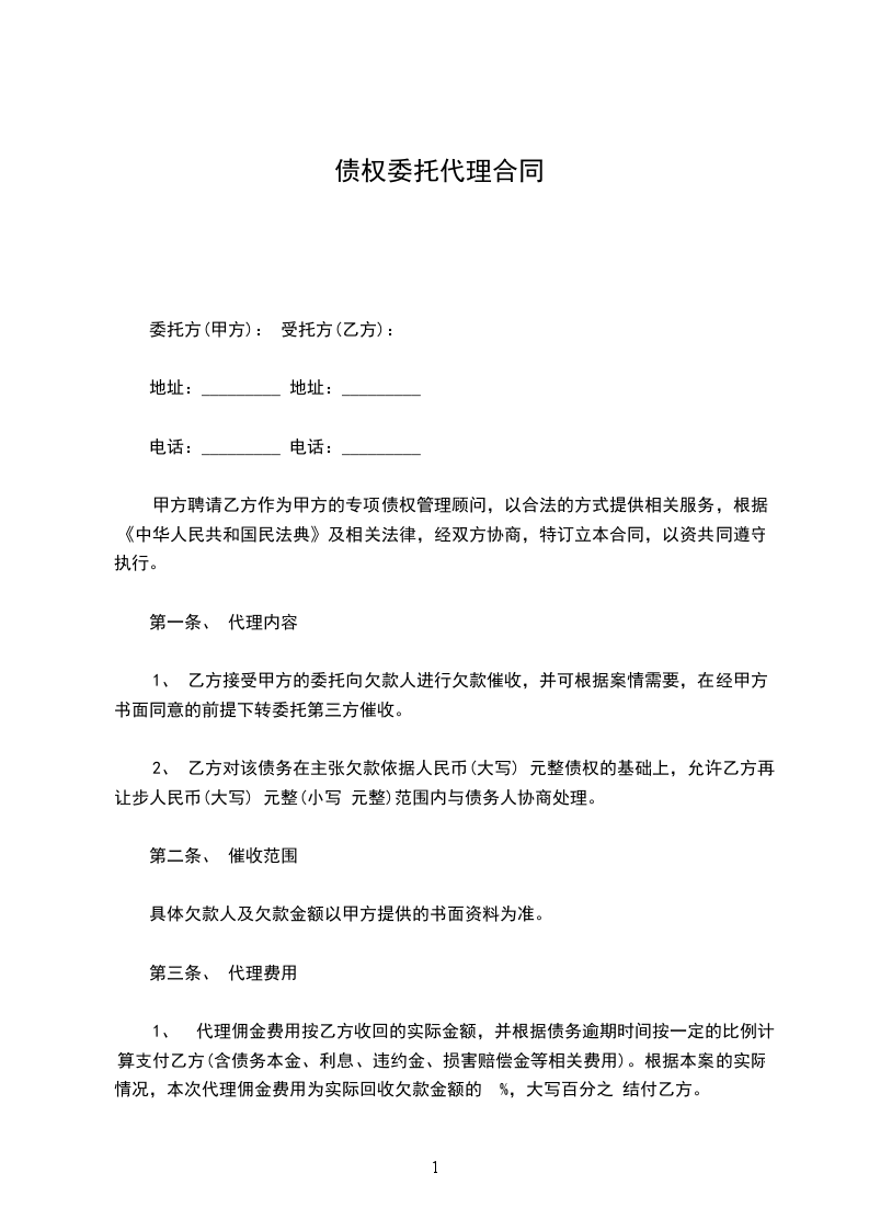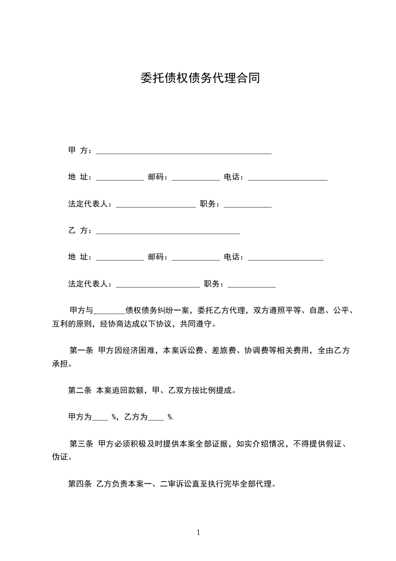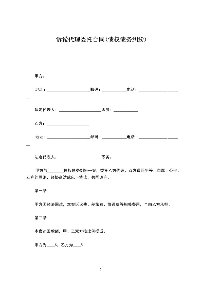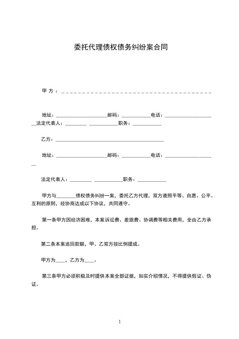 甲方与________债权债务纠纷一案,委托乙方代理,双方遵照平等、自愿、公平、互利的原则,经协商达成以下协议,共同遵守。