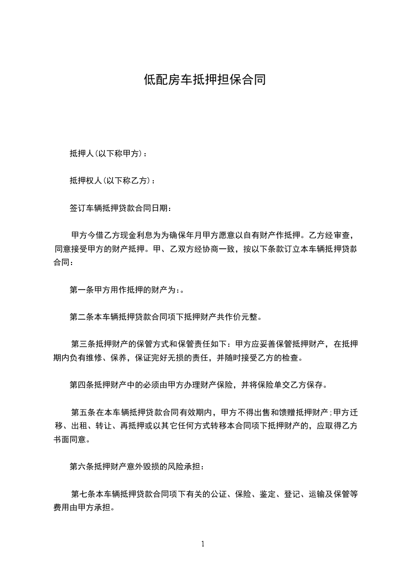 2、暂管:抵押物由乙方负责暂管,一切仓储及其保险管理费用均由乙方承担。