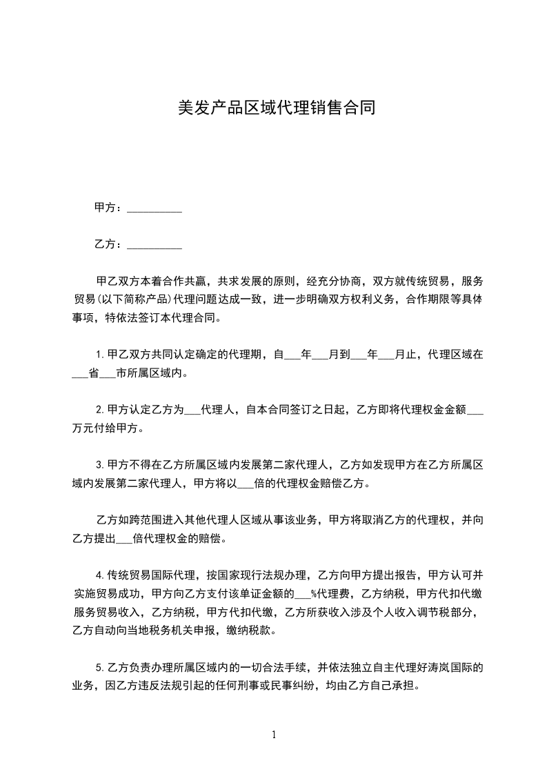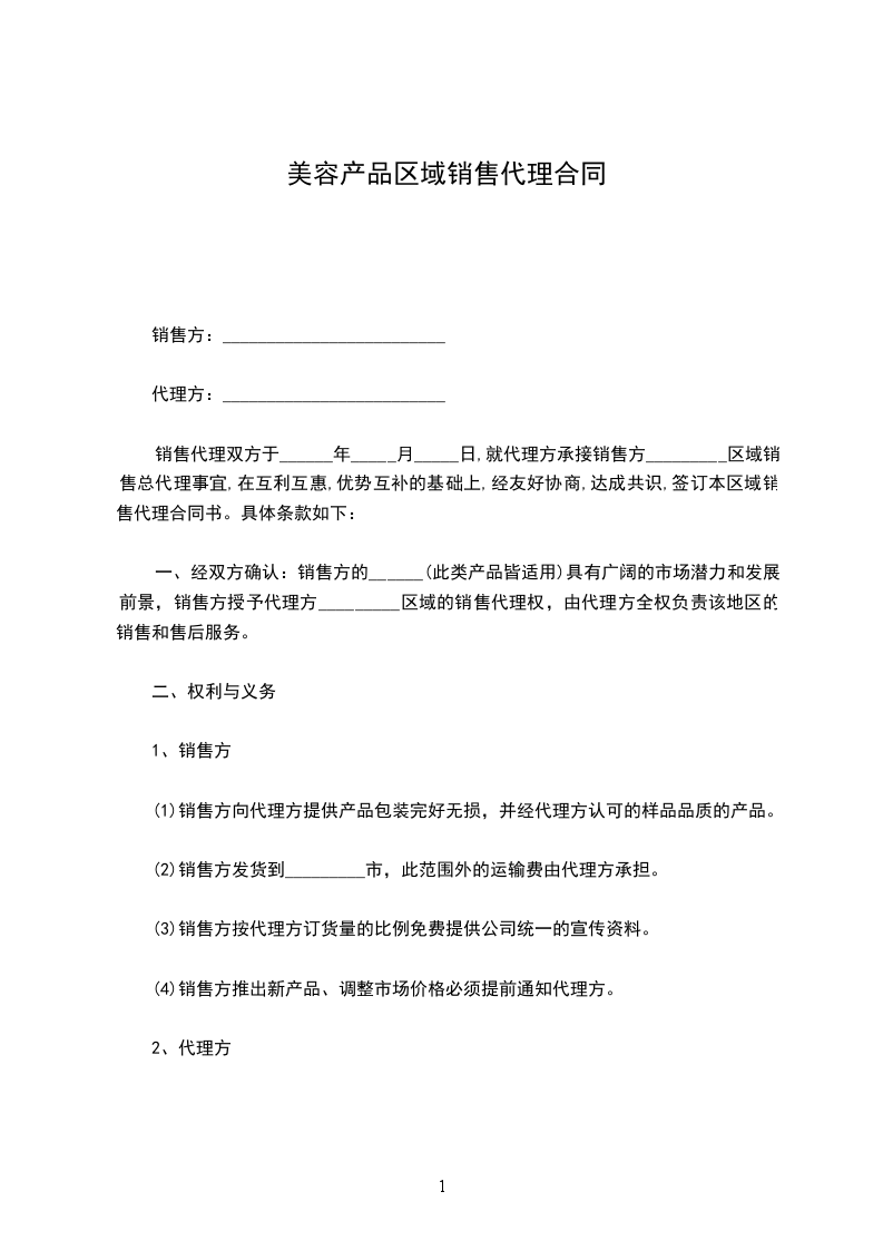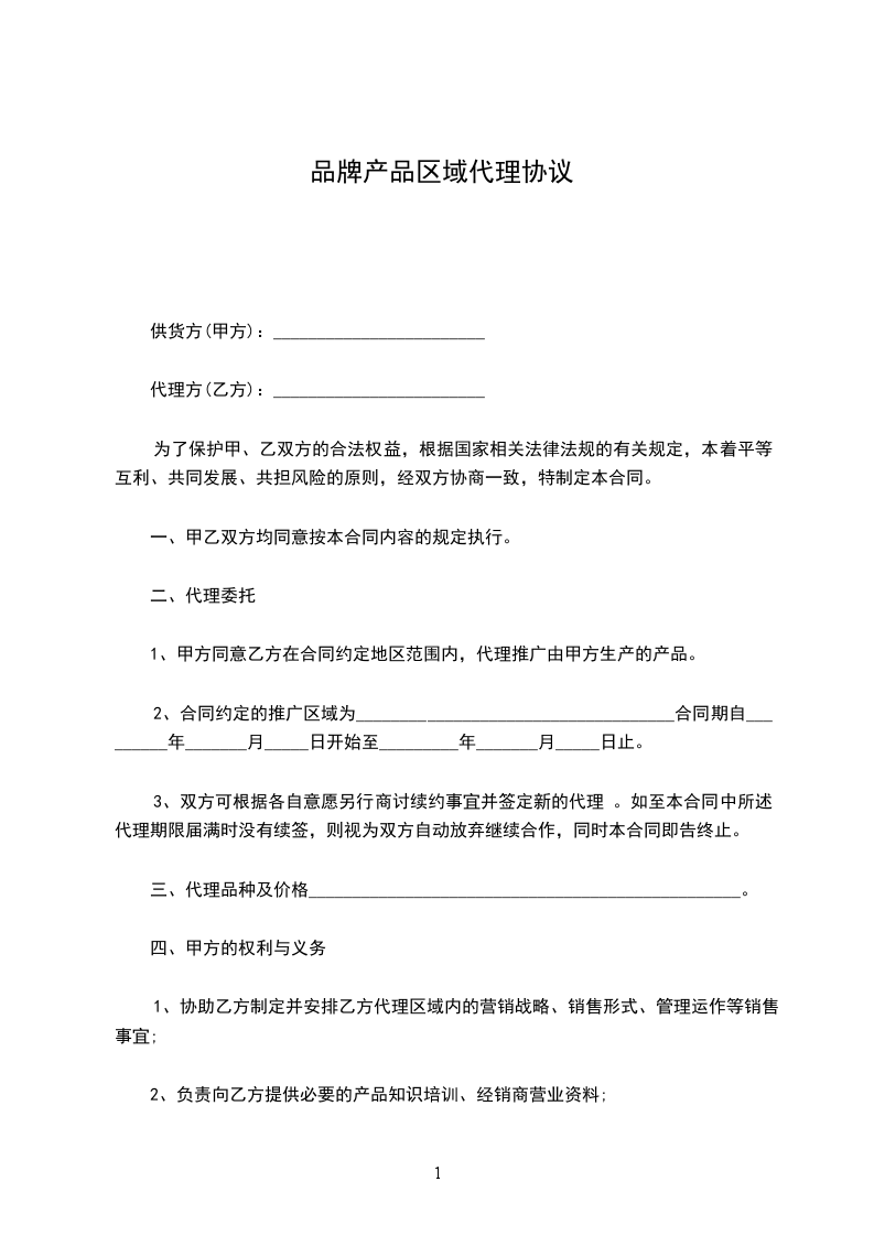 一、经双方确认:销售方的______(此类产品皆适用)具有广阔的市场潜力和发展前景,销售方授予代理方_________区域的销售代理权,由代理方全权负责该地区的销售和售后服务。