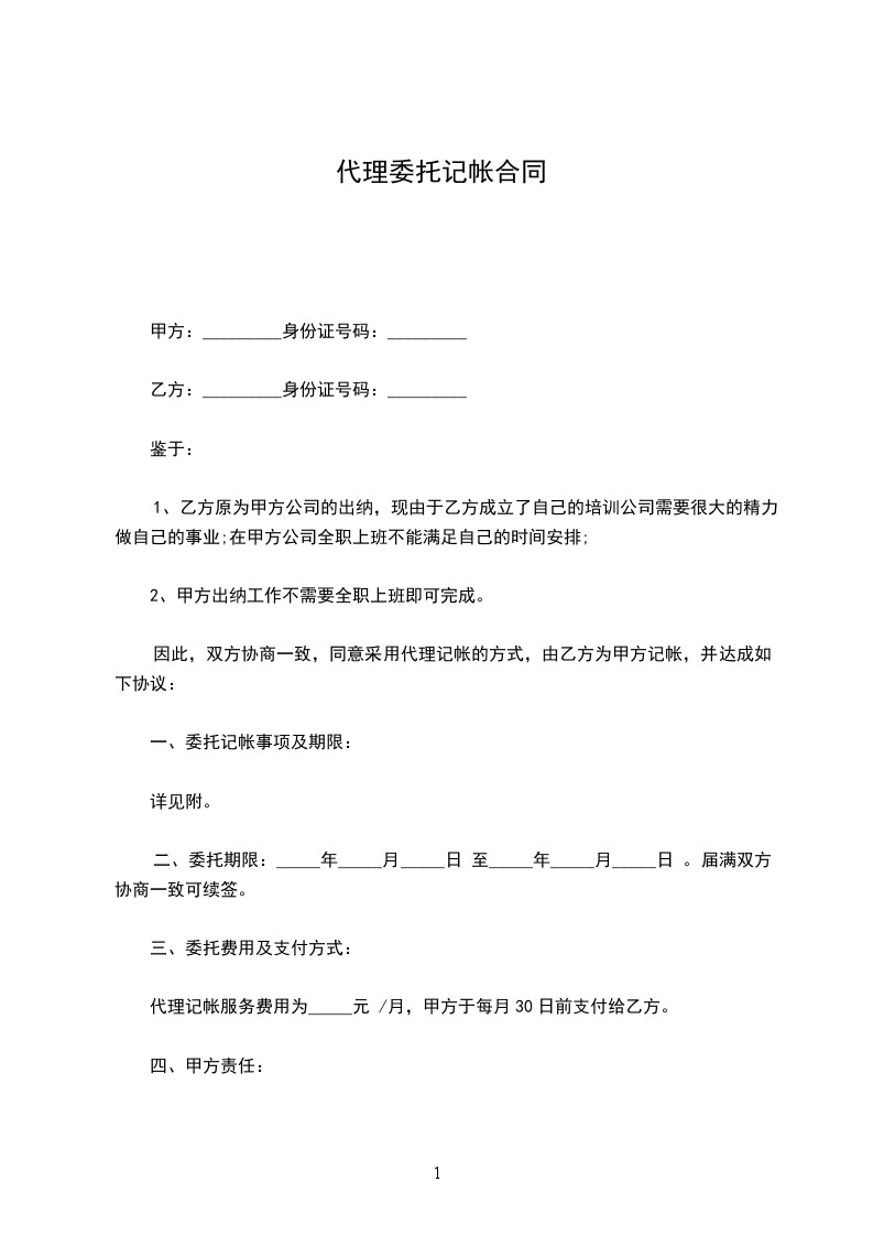 因此,双方协商一致,同意采用代理记帐的方式,由乙方为甲方记帐,并达成如下协议: