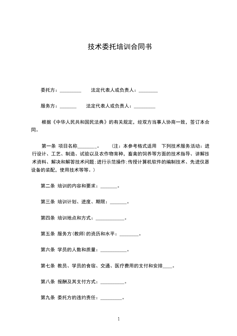 培训单位:____学院(或学校),以下简称甲方;