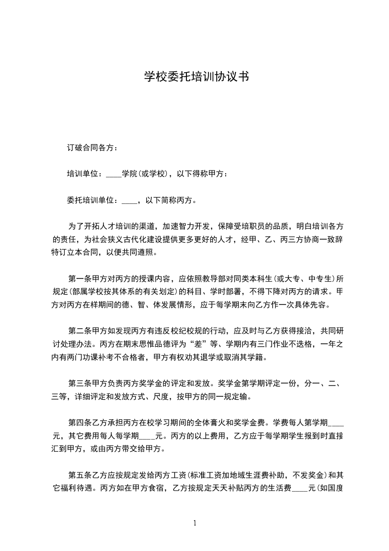 委托培训单位:____,以下简称乙方;