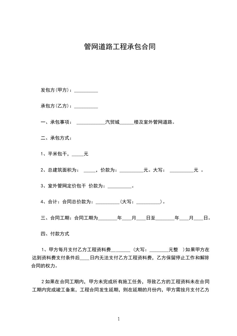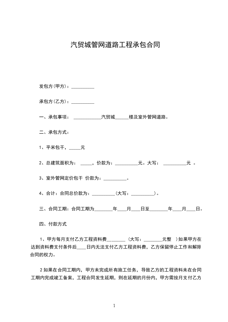 一、承包事项: ____________汽贸城______楼及室外管网道路。