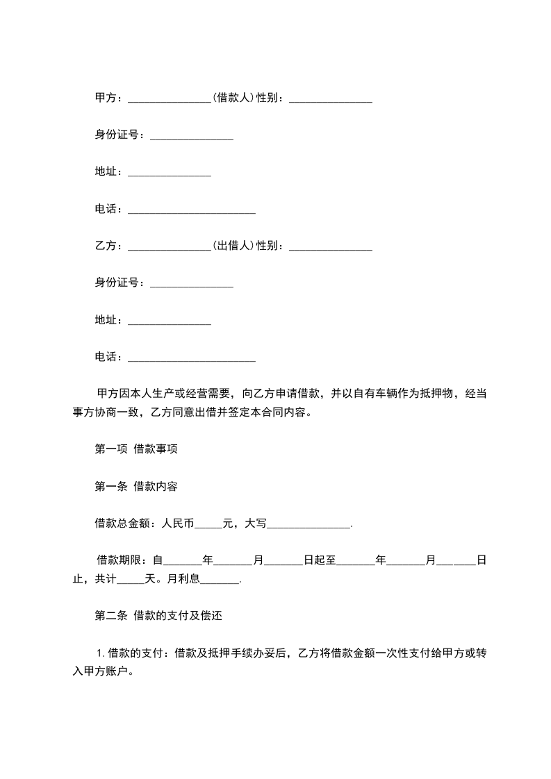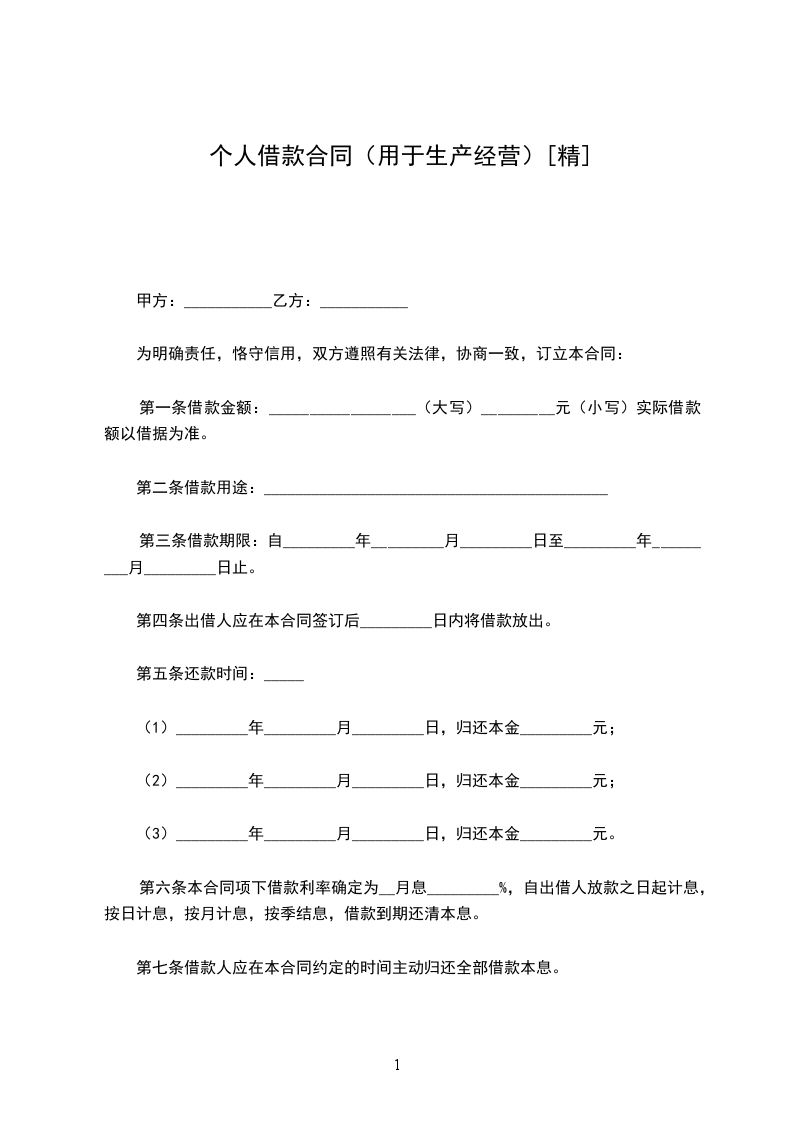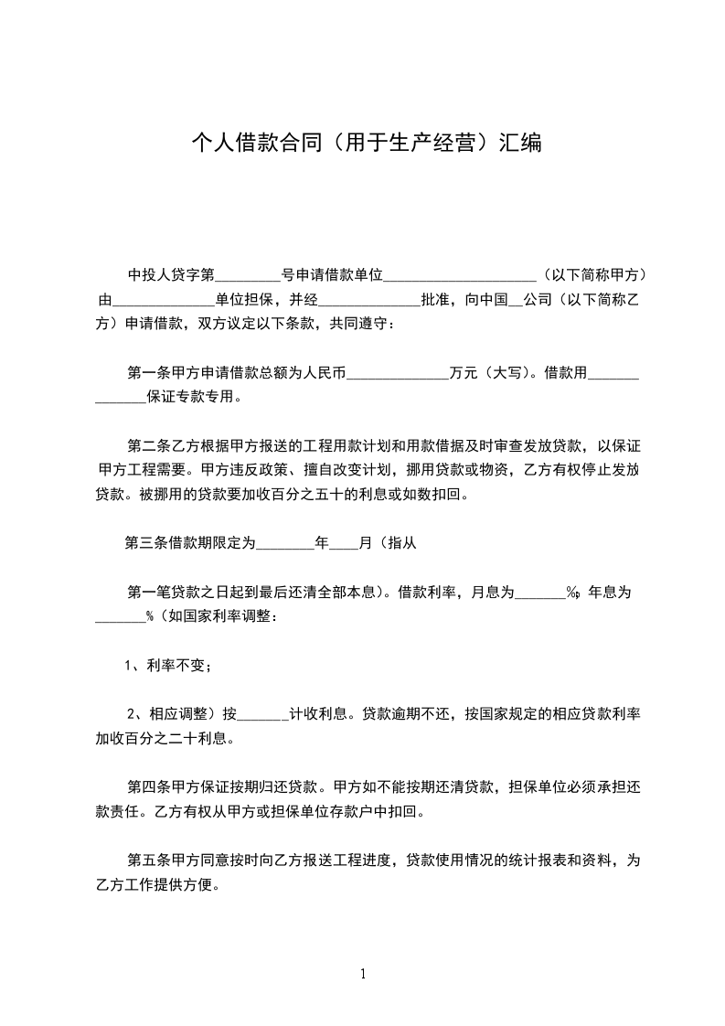 1、借款时间共_______个月,自_______年_______月到_______年_______月止。