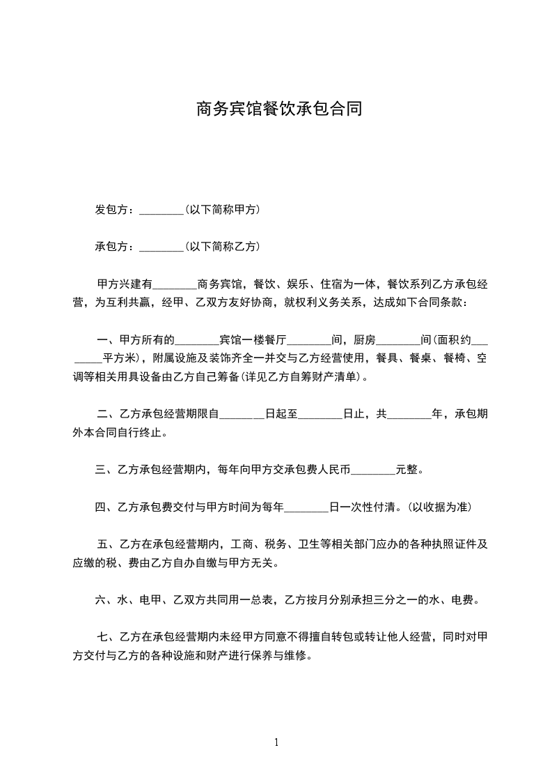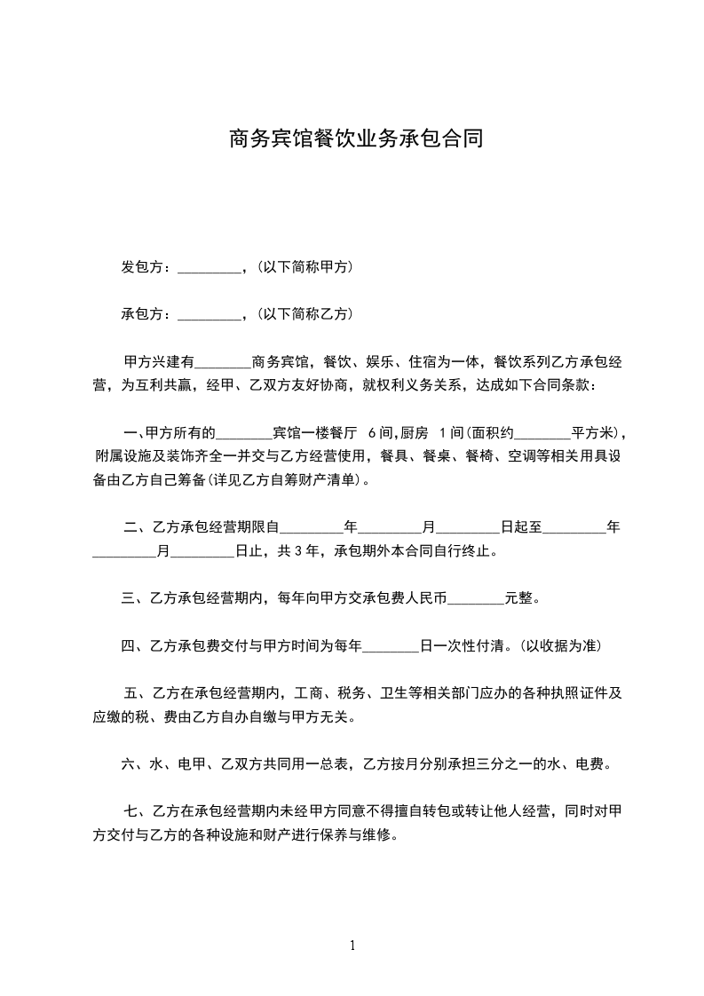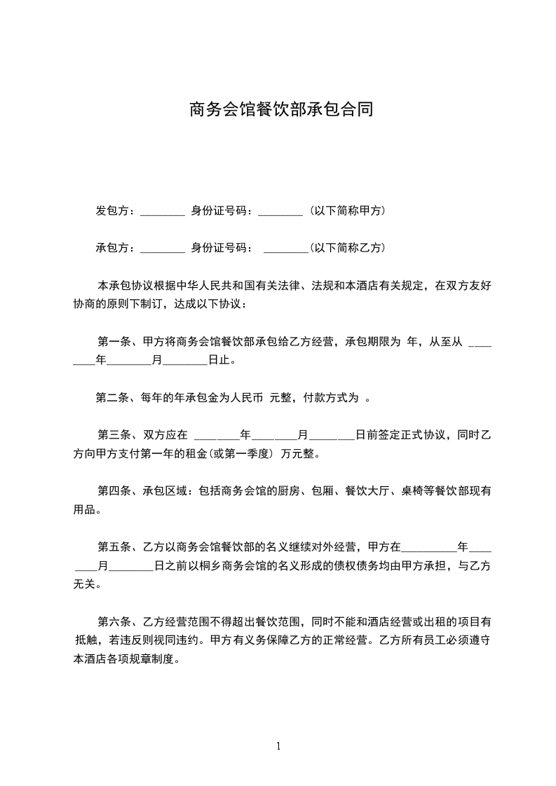 1、乙方在承包期间从事饮食经营服务不得从事其它方面经营活动。
