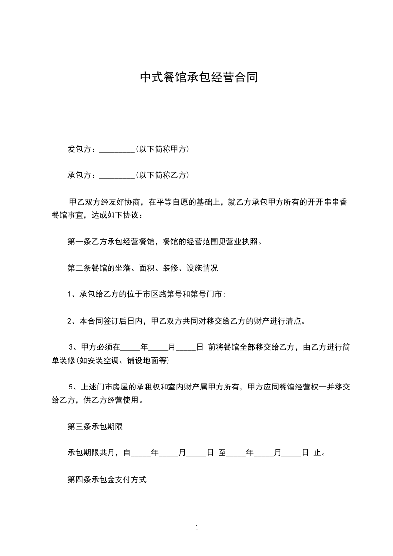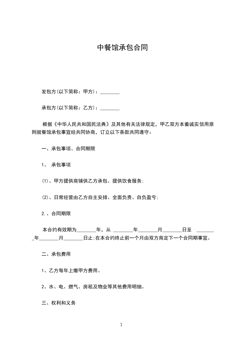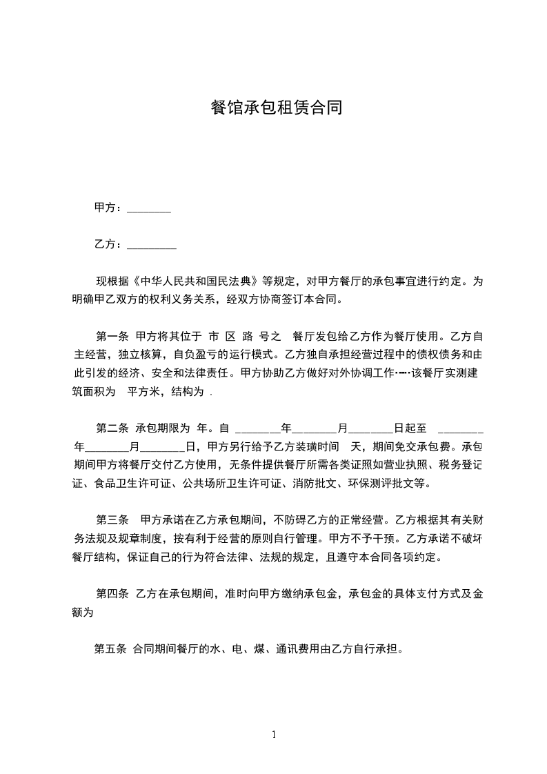 根据《中华人民共和国民法典》及其他有关法律规定,甲乙双方本着诚实信用原则就餐馆承包事宜经共同协商,订立以下条款共同遵守: