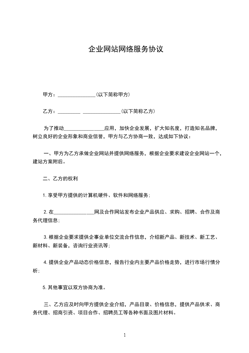 一、甲方为乙方承做企业网站并提供网络服务,根据企业要求建设企业网站一个,建站方案附后。