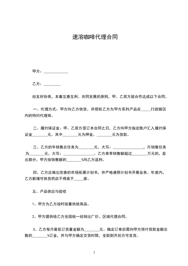 一、代理方式:甲方向乙方供货,并授权乙方为甲方系列产品在_____行政辖区内的特约代理商。