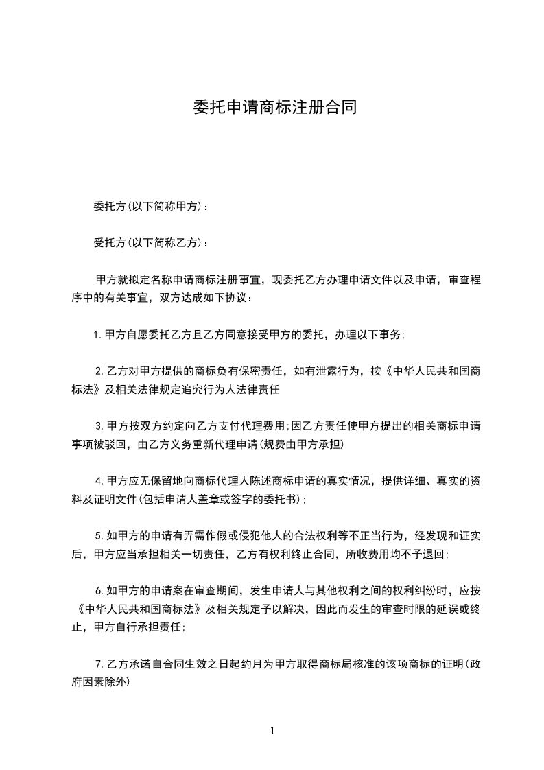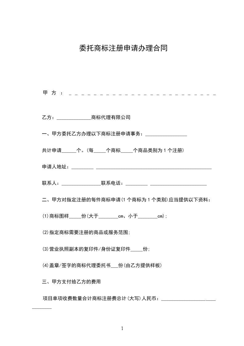 一、甲方委托乙方办理以下商标注册申请事务:_________________