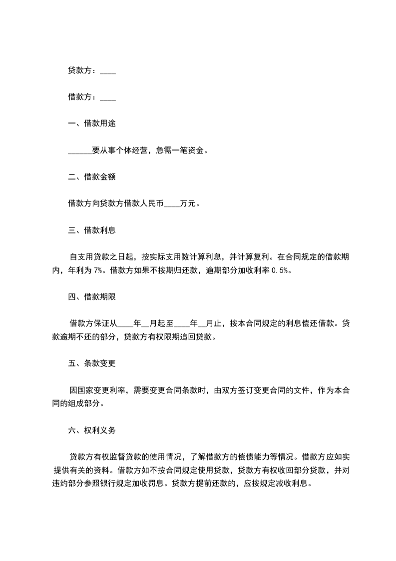 借款方向贷款方借款人民币____万元。