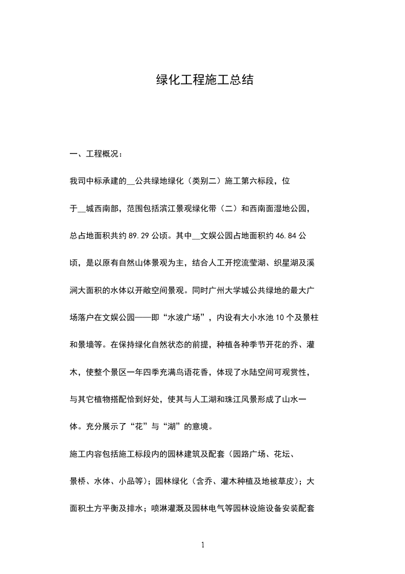 1.工程名称:____________________项目外环境景观及____________________景观园林绿化工程;