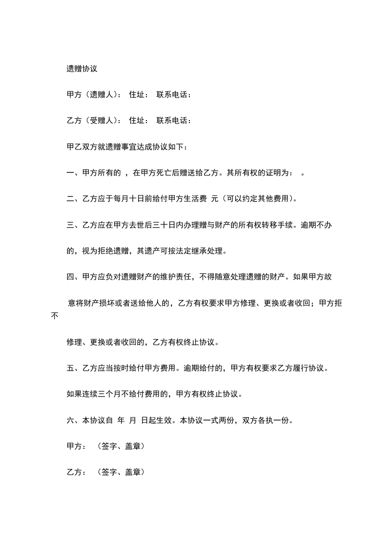 三、乙方应在甲方去世后三十日内办理赠与财产的所有权转移手续。逾期不办
