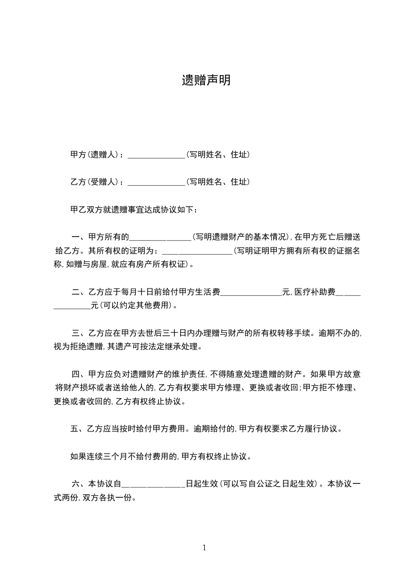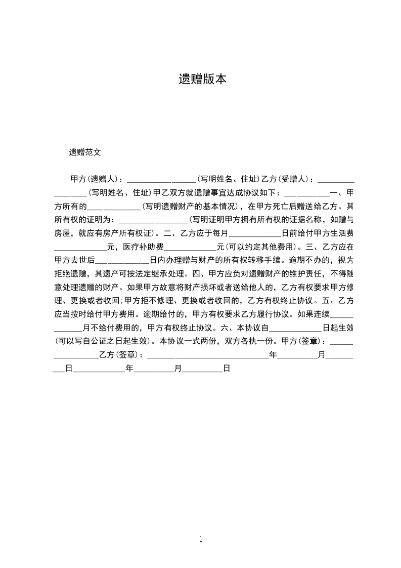一、甲方所有的 ,在甲方死亡后赠送给乙方。其所有权的证明为: 。
