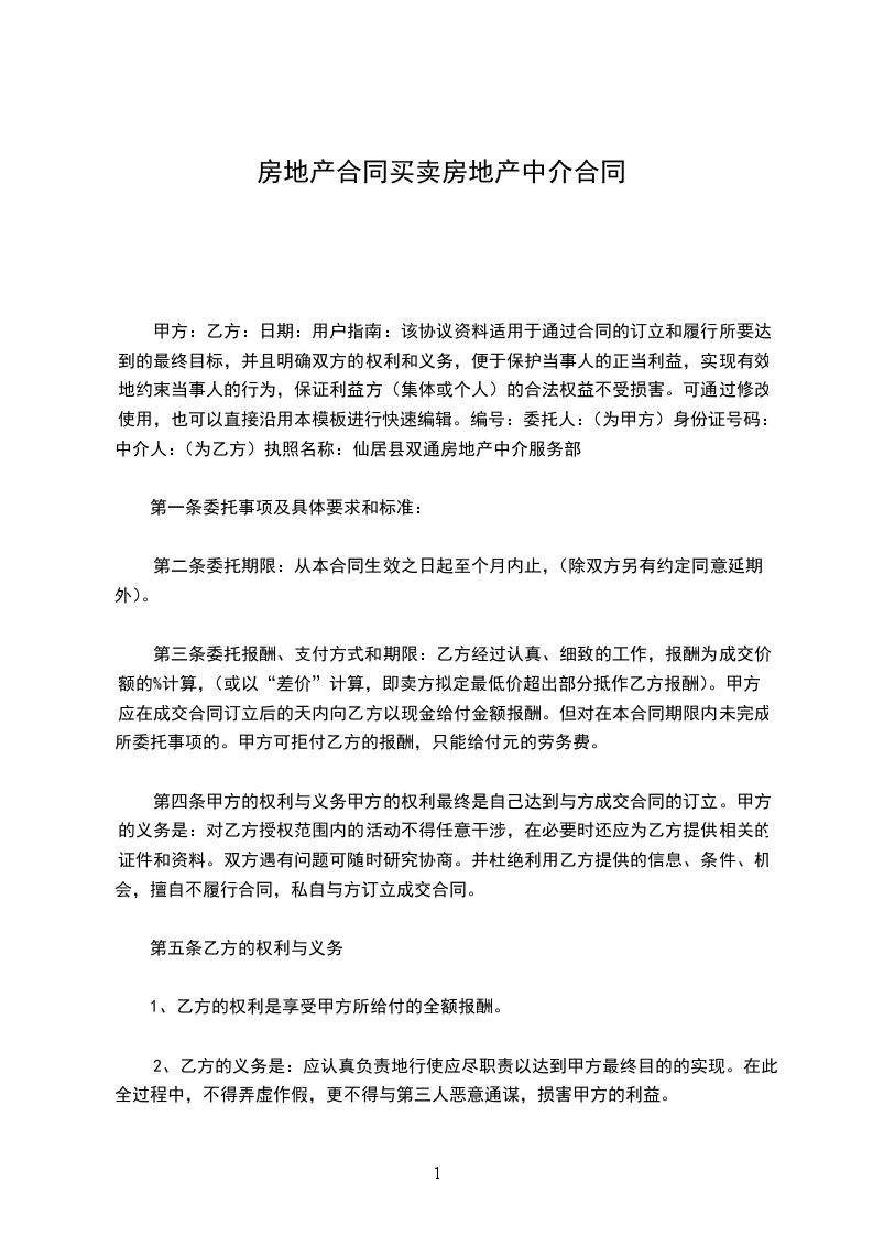 5、按本合同约定,按期支付佣金和代办费。