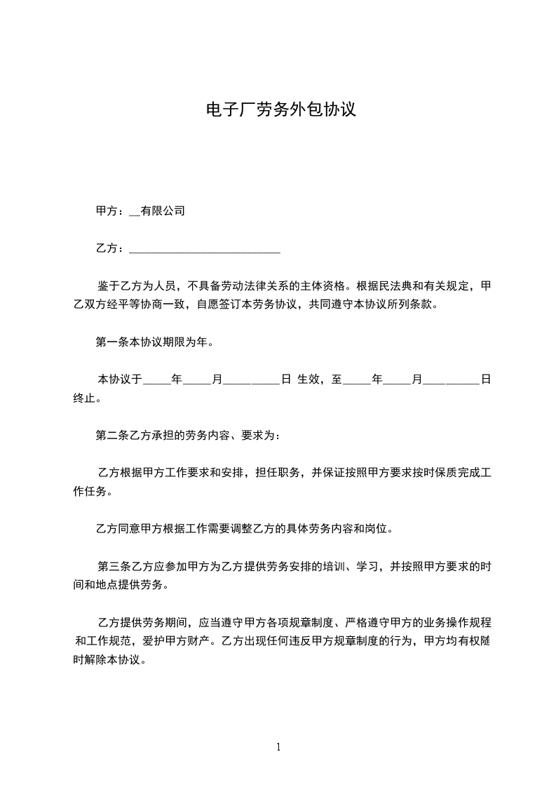 第一条本合同于_________日生效,期限_________年。