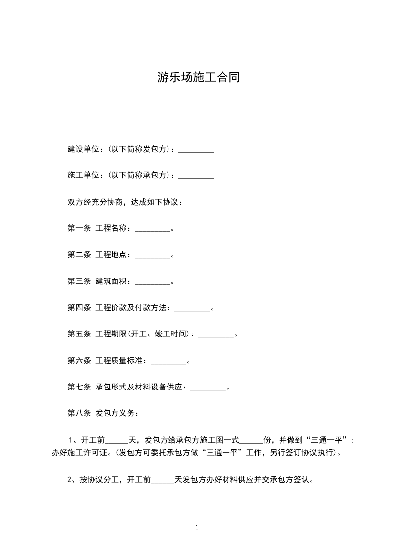 1、开工前______天,发包方给承包方施工图一式______份,并做到“三通一平”;办好施工许可证。(发包方可委托承包方做“三通一平”工作,另行签订协议执行)。
