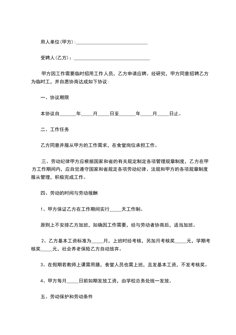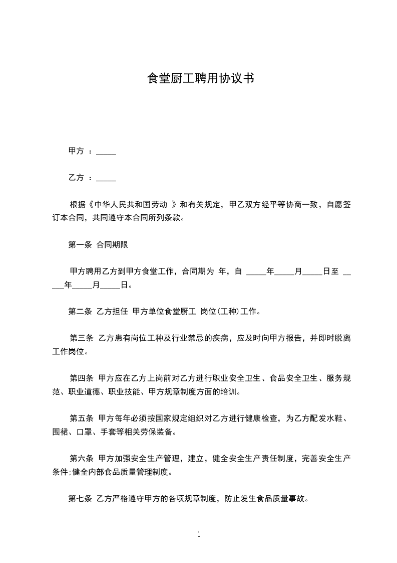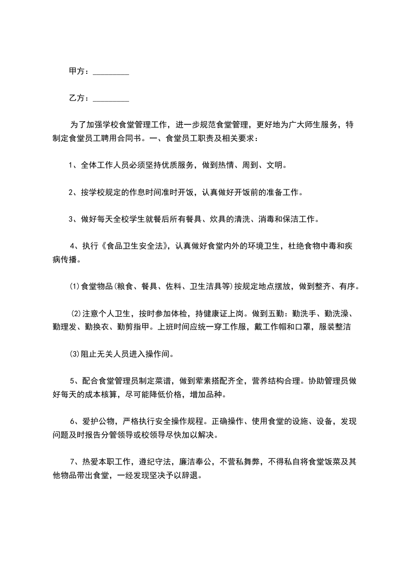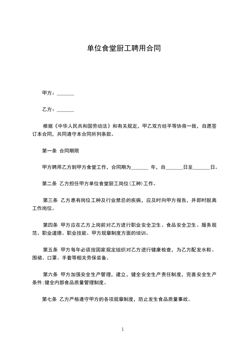 甲方聘用乙方到甲方食堂工作,合同期为_________年,自_________日至_________日。