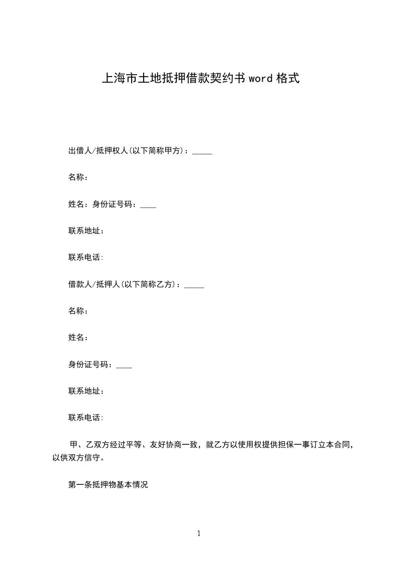 甲方因生产需要,向乙方申请借款。双方经协商一致同意,甲方以其所有的财产 (以下简称甲方抵押物),作为借款抵押物抵押给乙方,由乙方提供双方商定的借款额给甲方。就有关事项订立如下协议: