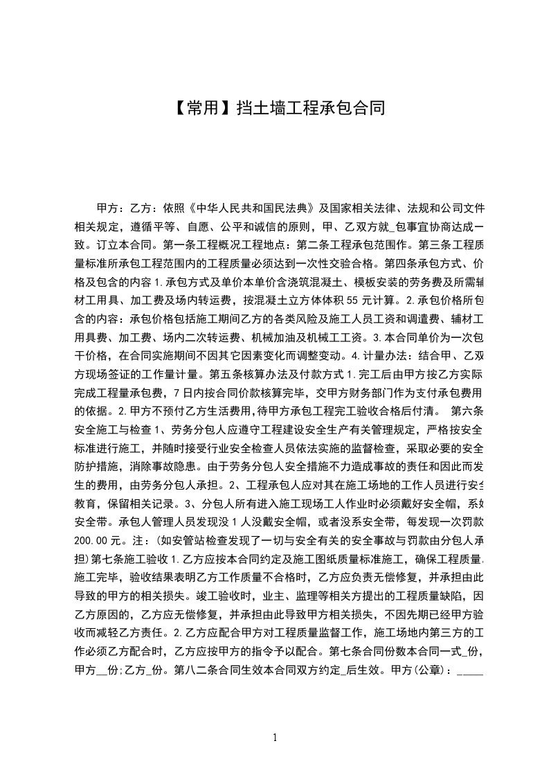 6)本合同自签订日起生效挡土墙完工验收后,付清工程款自行失效