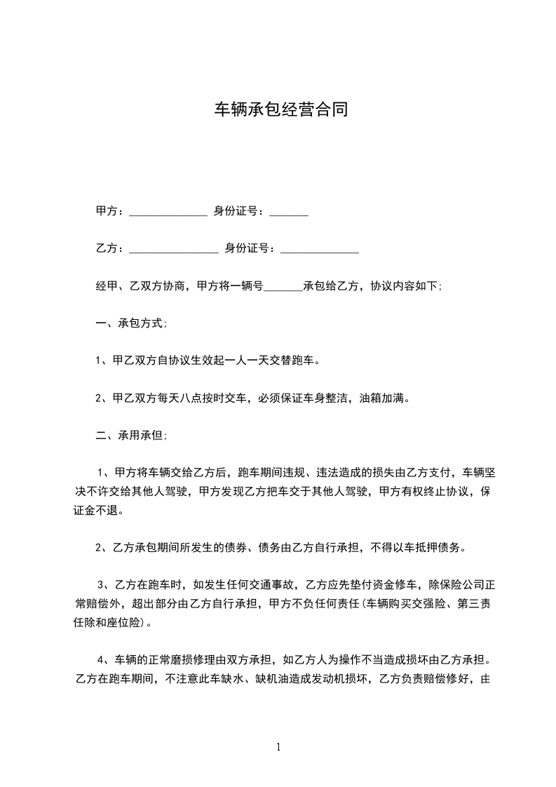 经甲、乙双方协商,甲方将一辆号_______承包给乙方,协议内容如下;