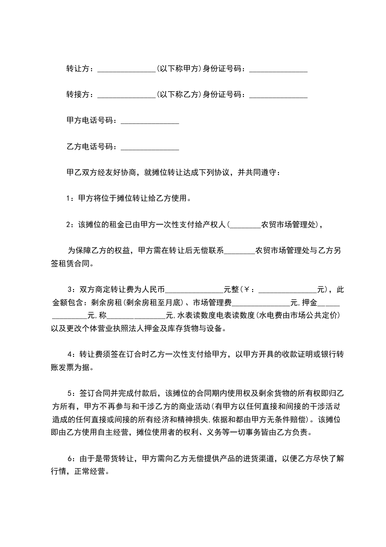 经乙方要求,甲方同意将所属的_________综合农贸市场_________号摊位出租给乙方使用,固定经营蔬菜商品。