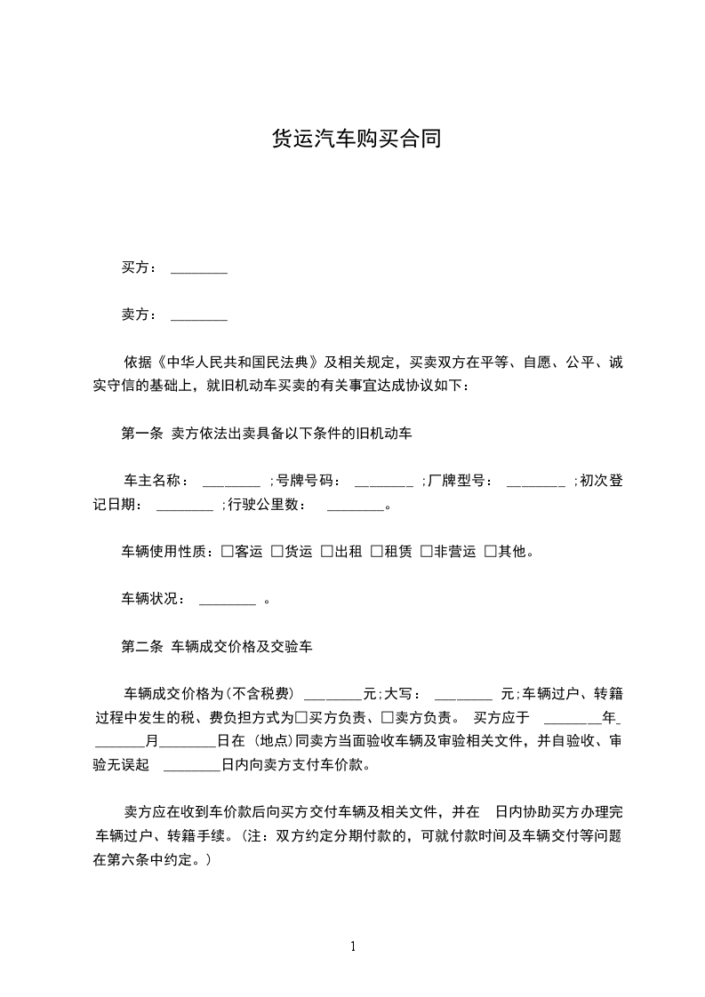 依据《中华人民共和国民法典》及相关规定,买卖双方在平等、自愿、公平、诚实守信的基础上,就旧机动车买卖的有关事宜达成协议如下: