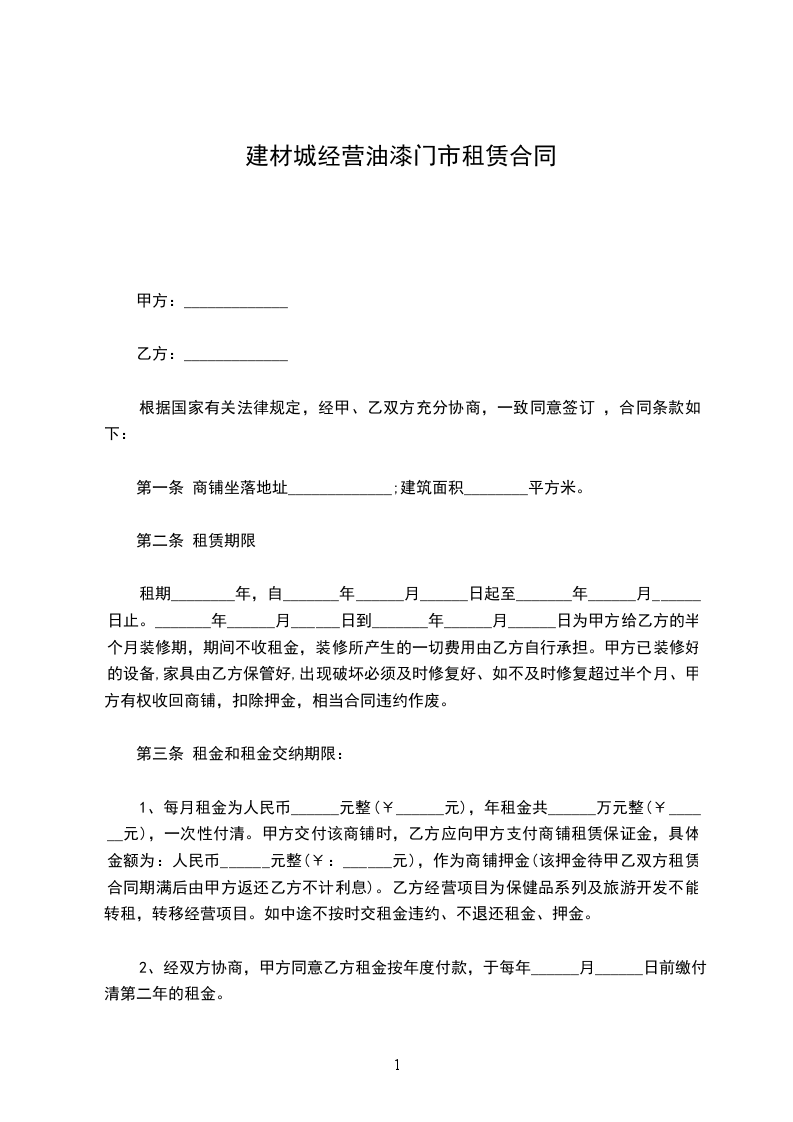 租期________年,自_______年______月______日起至_______年______月______日止。_______年______月______日到_______年______月______日为甲方给乙方的半个月装修期,期间不收租金,装修所产生的一切费用由乙方自行承担。甲方已装修好的设备,家具由乙方保管好,出现破坏必须及时修复好、如不及时修复超过半个月、甲方有权收回商铺,扣除押金,相当合同违约作废。