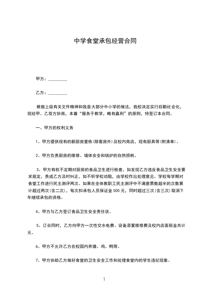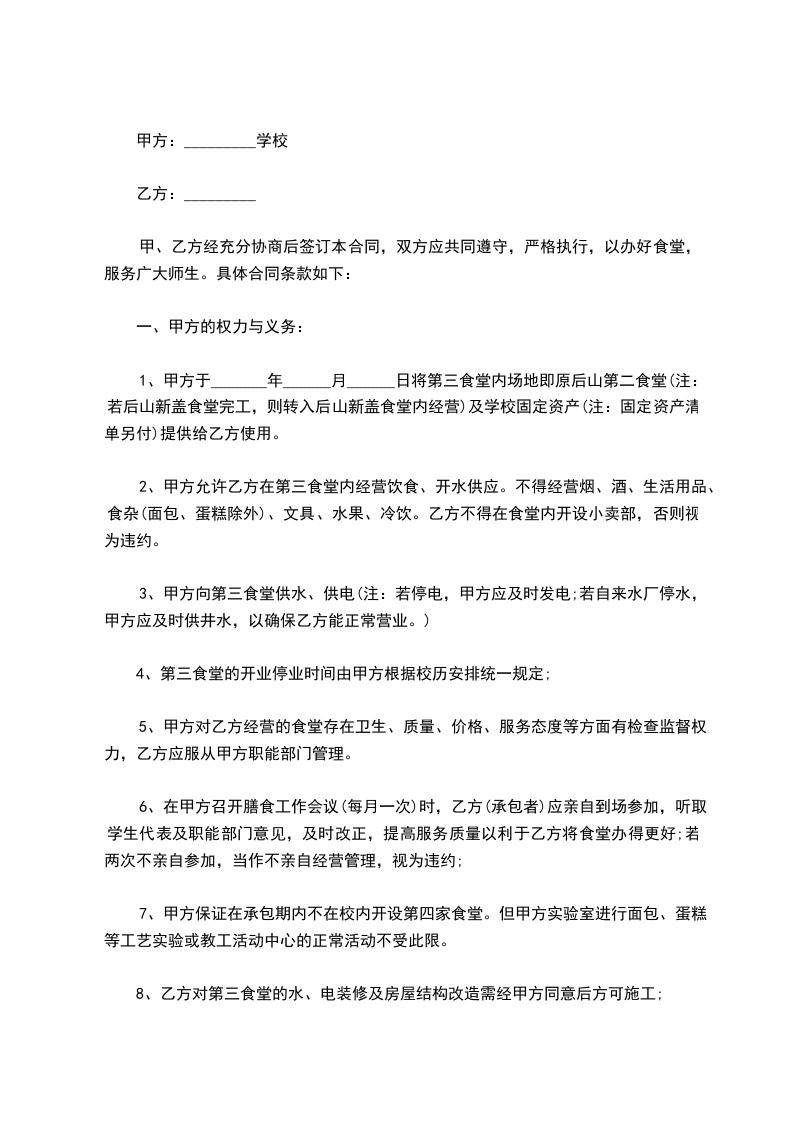 3) 甲方应协助乙方维持食堂治安秩序,并加强对员工的教育。