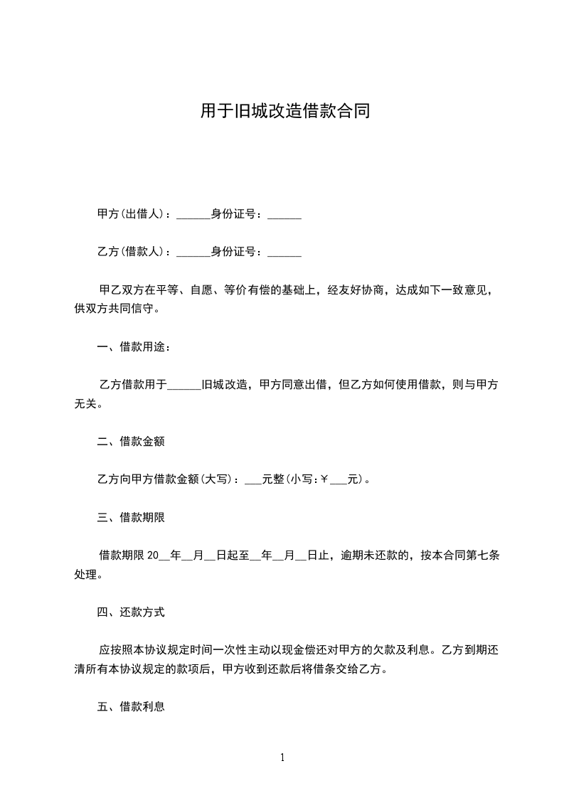 乙方借款用于______旧城改造,甲方同意出借,但乙方如何使用借款,则与甲方无关。