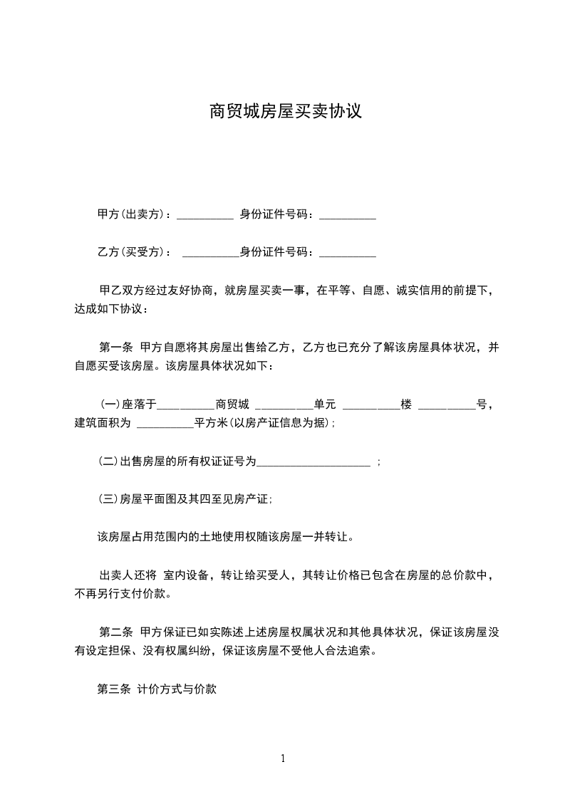 (一)座落于__________商贸城 __________单元 __________楼 __________号,建筑面积为 __________平方米(以房产证信息为据);