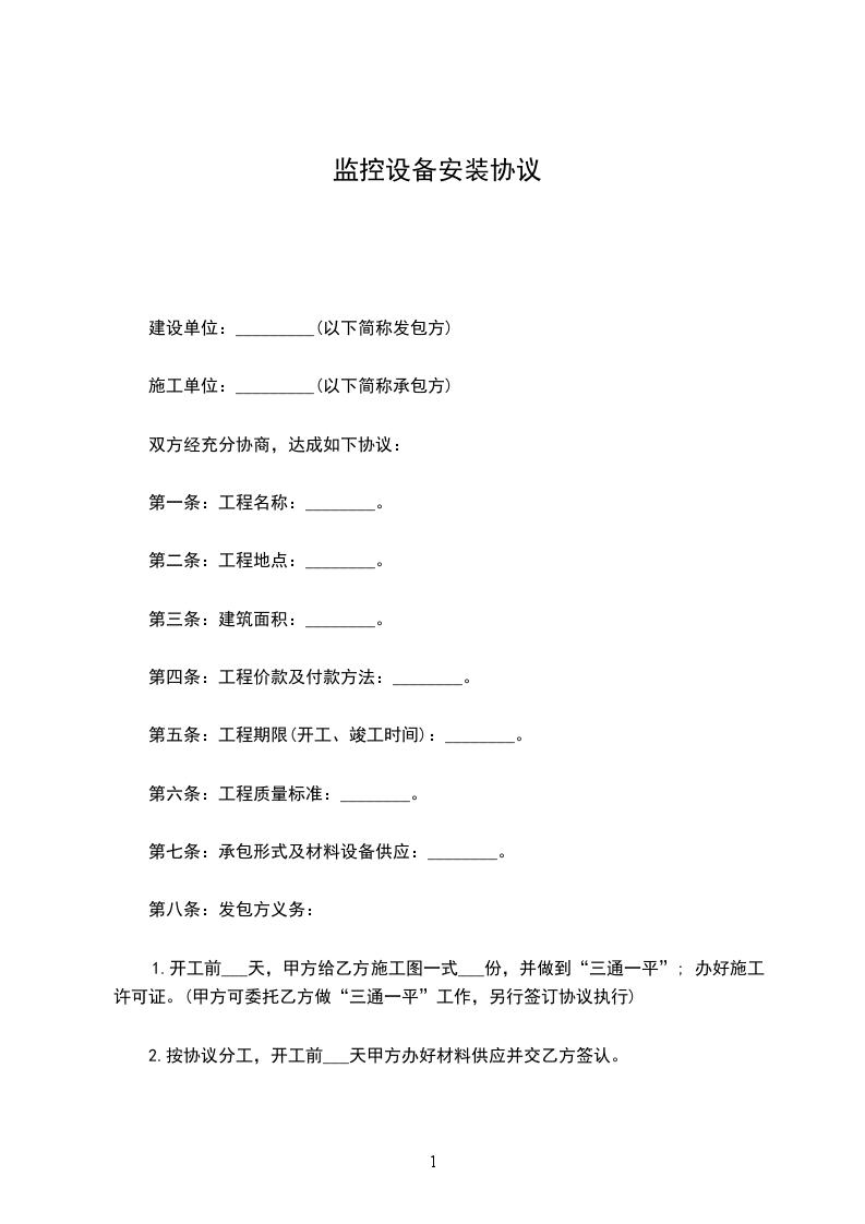 1.开工前___天,甲方给乙方施工图一式___份,并做到“三通一平”; 办好施工许可证。(甲方可委托乙方做“三通一平”工作,另行签订协议执行)