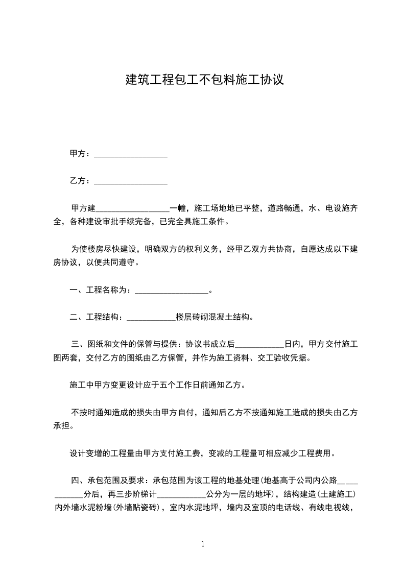 为了安全及时的完成建房工程,尽量避免和减少施工过程中的矛盾和问题,明确甲乙双方的权利和义务,甲乙双方本着公平互惠的原则达成以下协议: