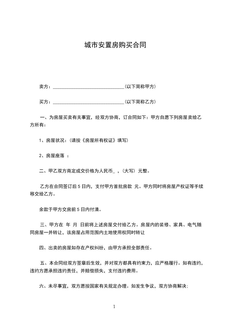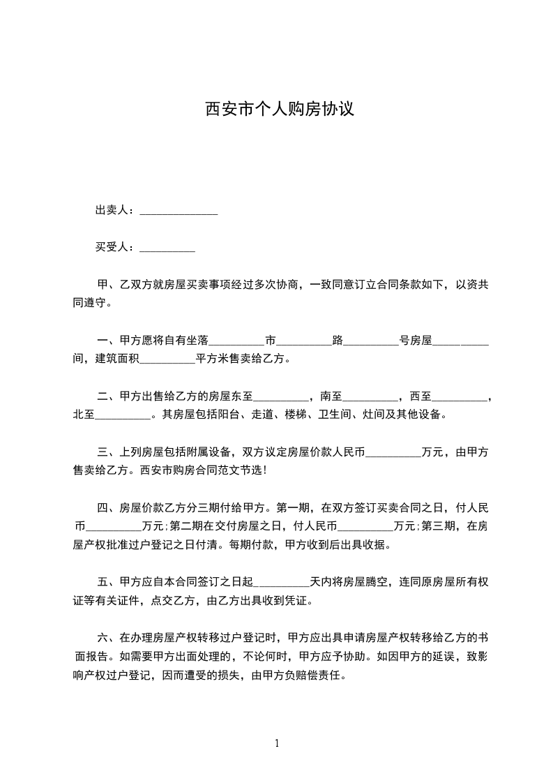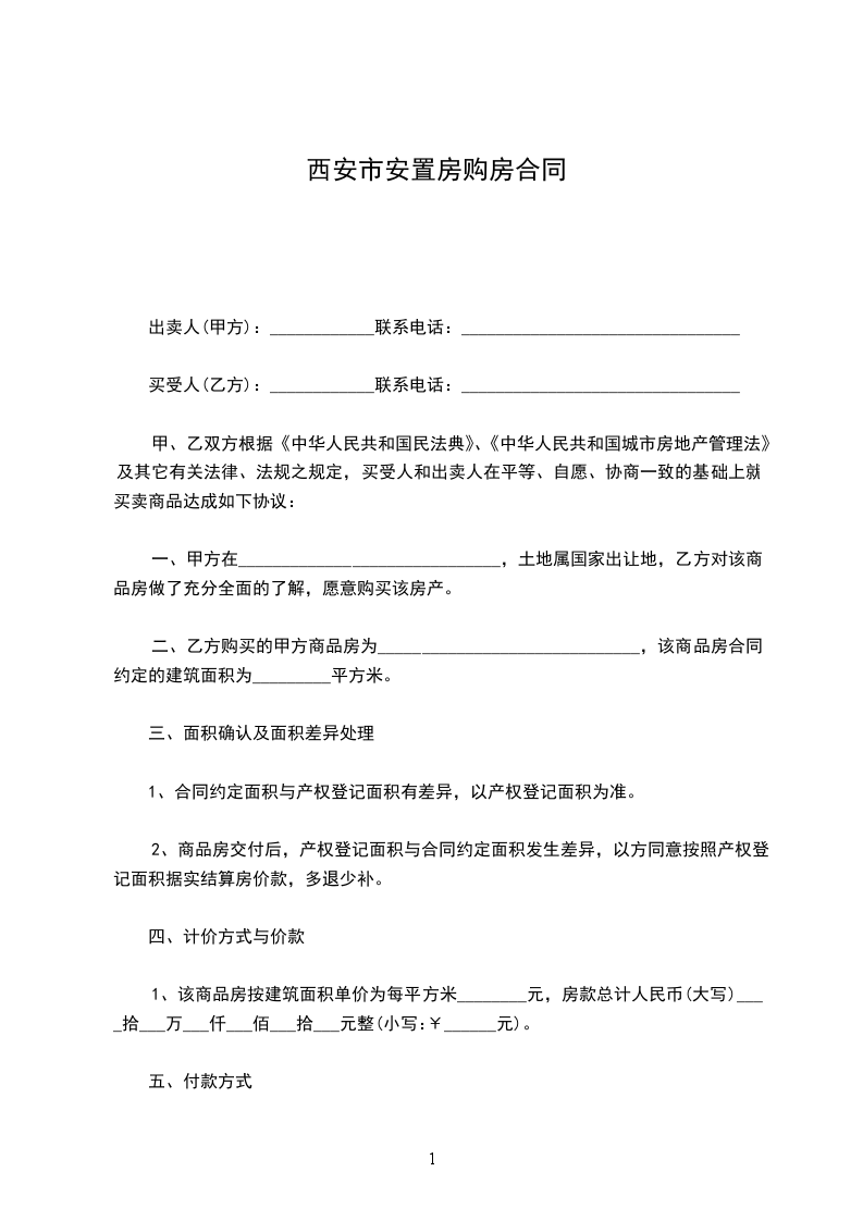 1、该商品房按建筑面积单价为每平方米________元,房款总计人民币(大写)____拾___万___仟___佰___拾___元整(小写:¥______元)。