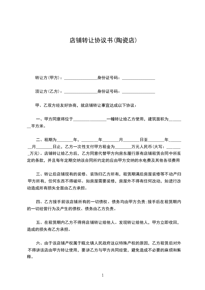 ___________陶瓷店,经营地点为______________________。