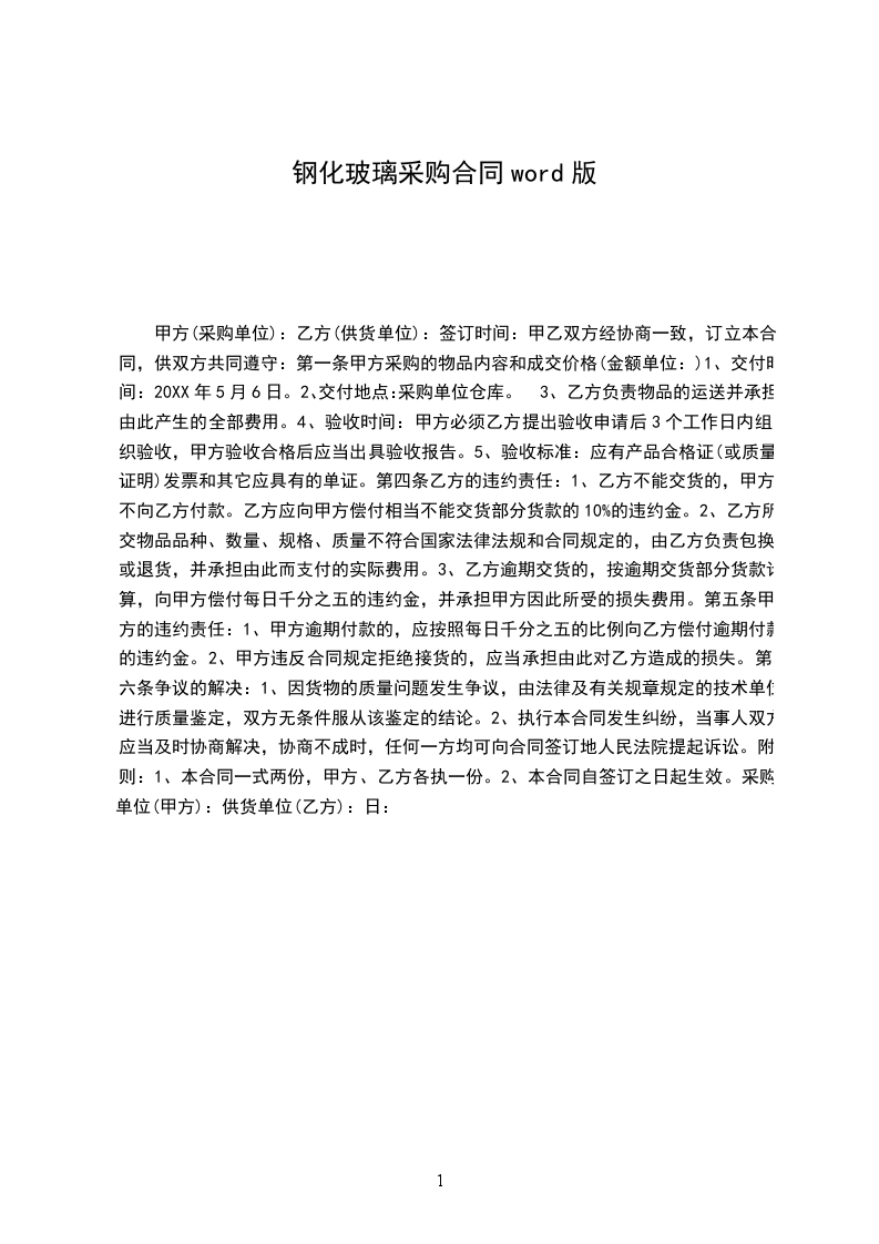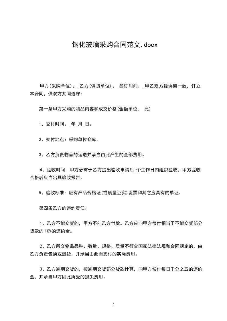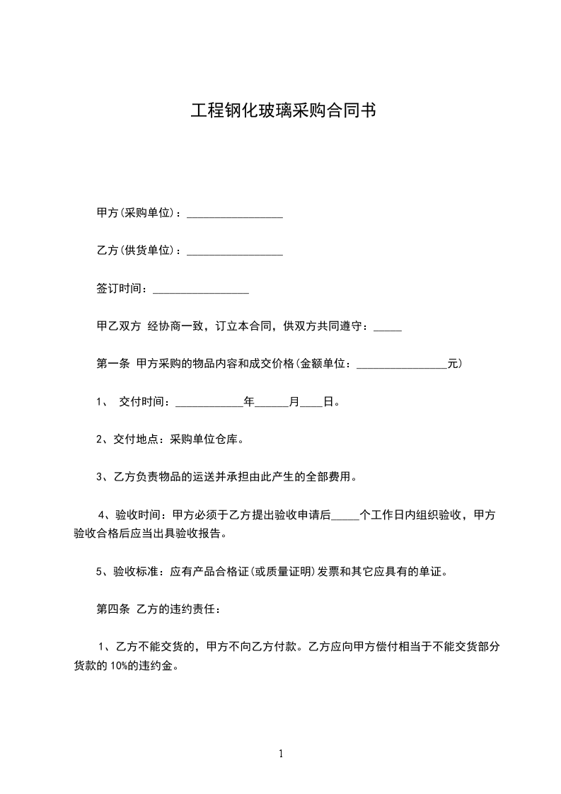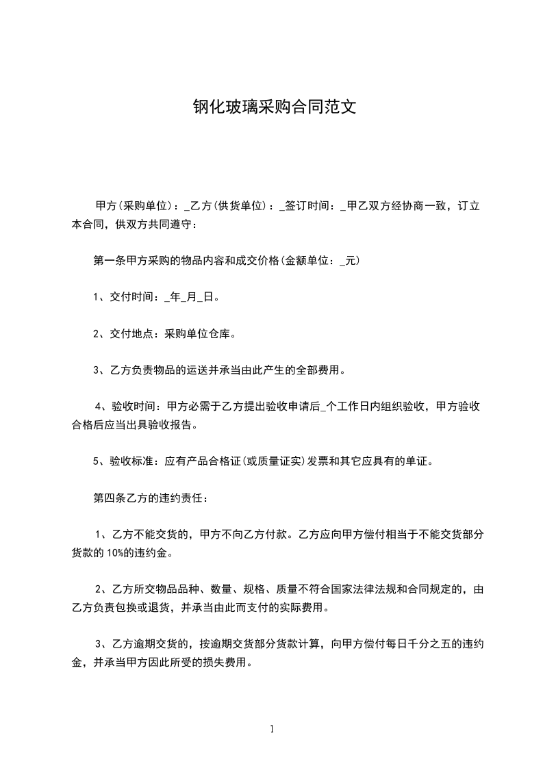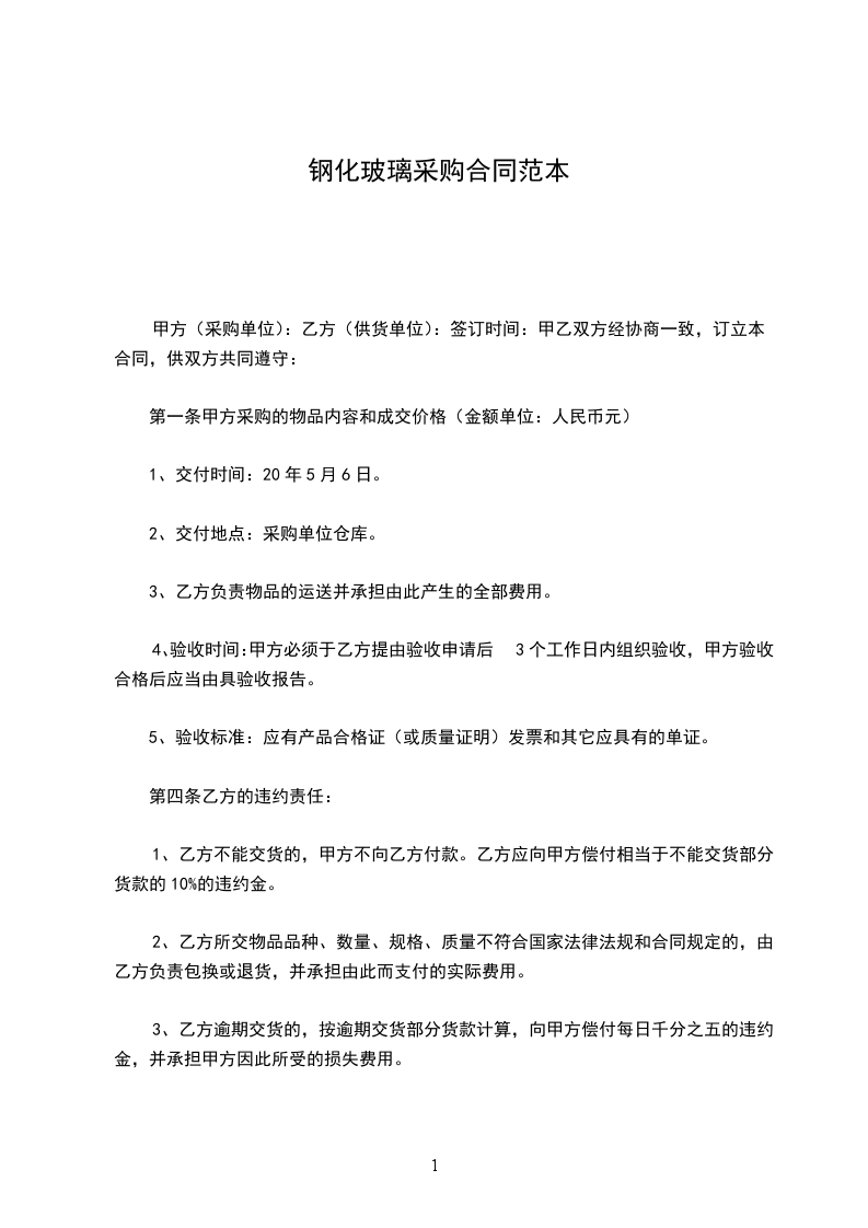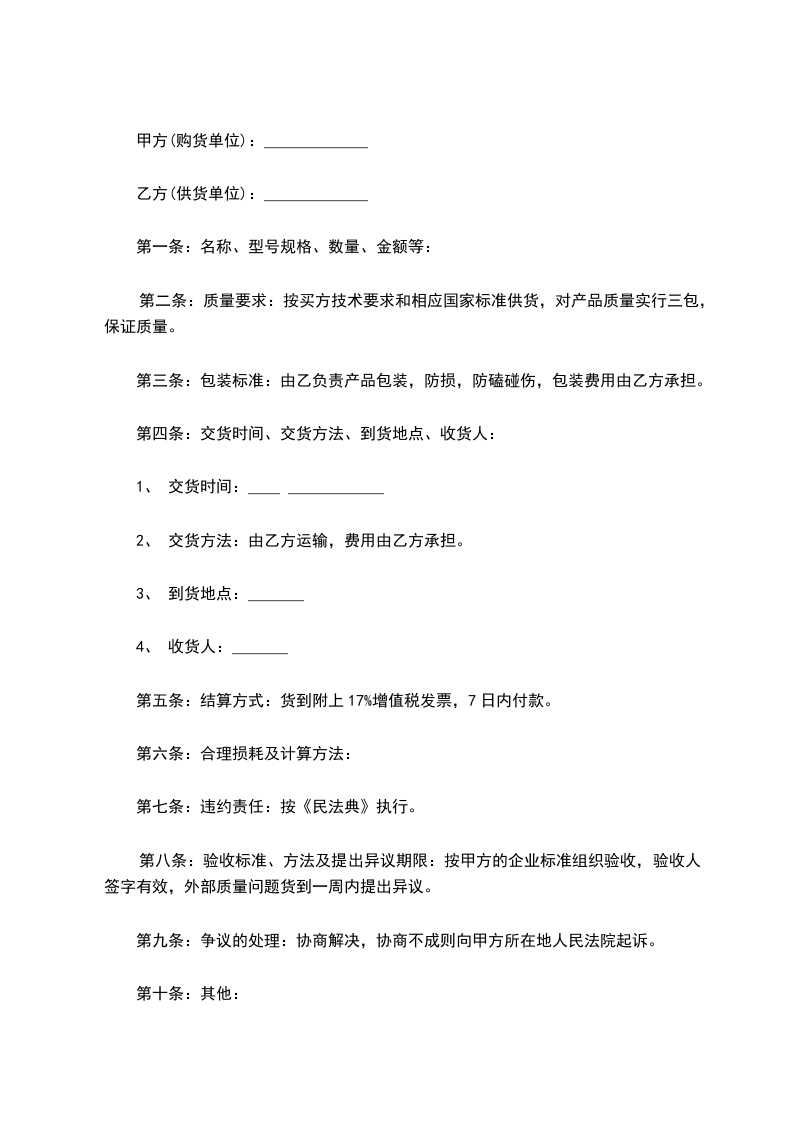 1、乙方不能交货的,甲方不向乙方付款。乙方应向甲方偿付相当于不能交货部分货款的10%的违约金。