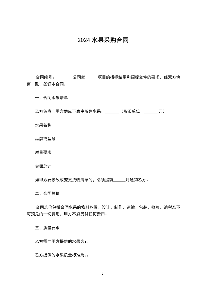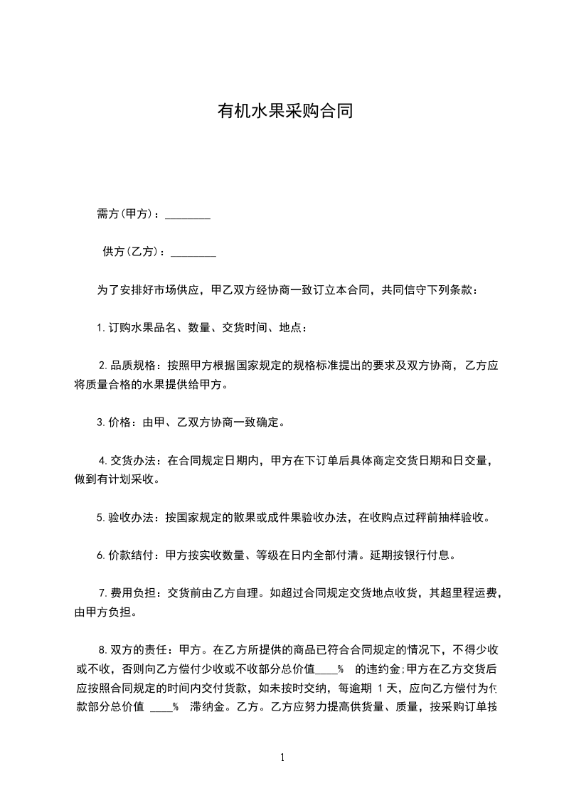 2.品质规格:按照甲方根据国家规定的规格标准提出的要求及双方协商,乙方应将质量合格的水果提供给甲方。