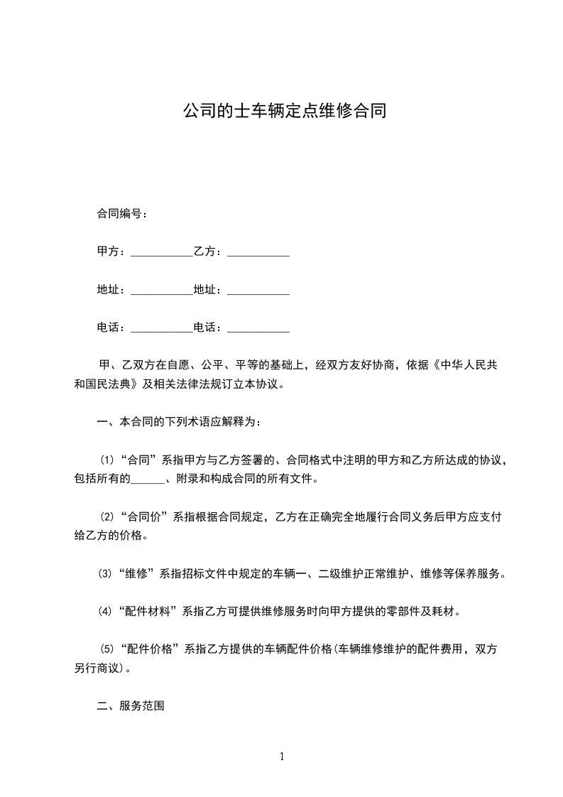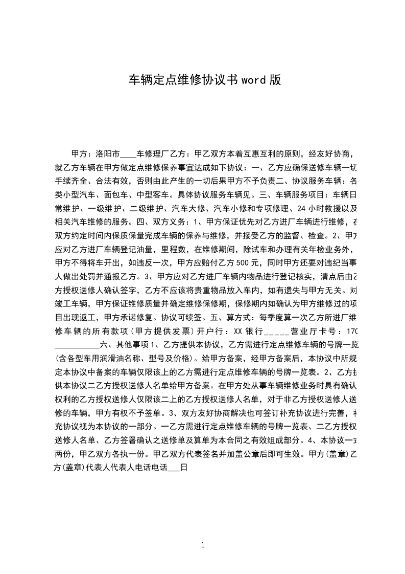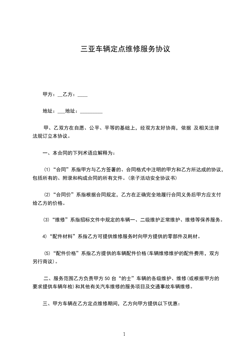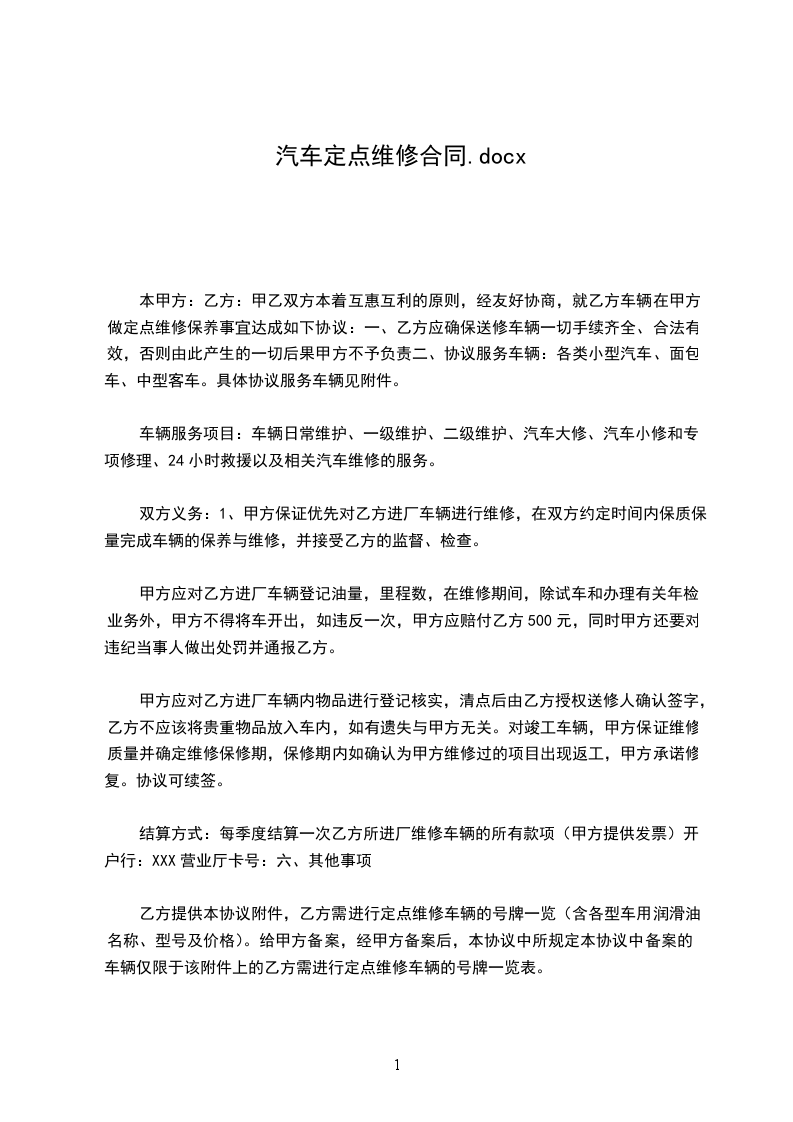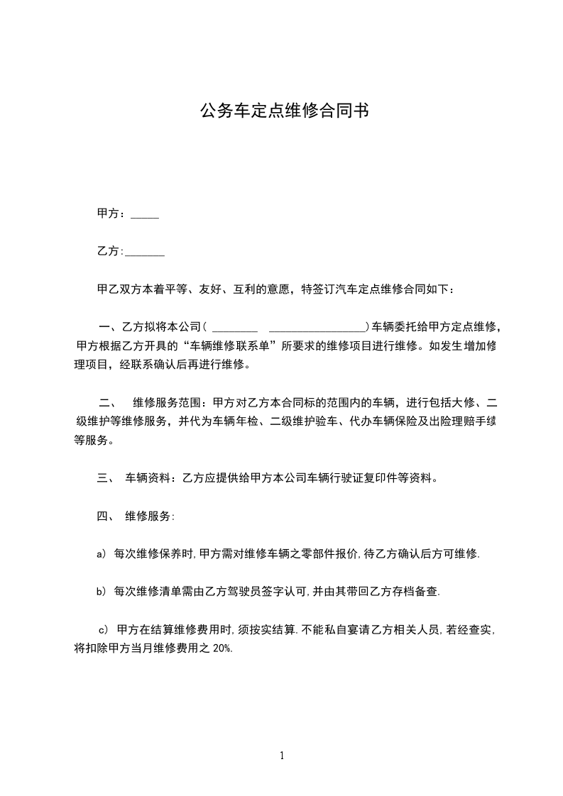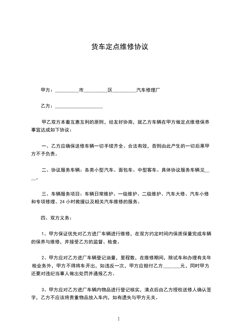 甲乙双方本着互惠互利的原则,经友好协商,就乙方车辆在甲方做定点维修保养事宜达成如下协议: