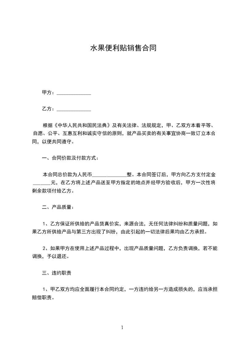 一、乙方在自有超市(便利店)销售甲方或甲方总代理产品,在未征得甲方同意下,不得转嫁第三方销售。