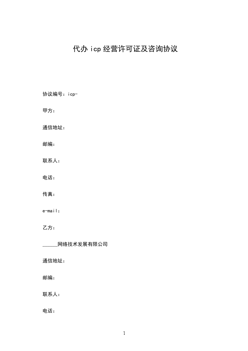 1-1 协议期内,通过电话或电子邮件的方式,在协议附属文件约定范围内对甲方申办ICP经营许可证的有关问题进行指导和解答。